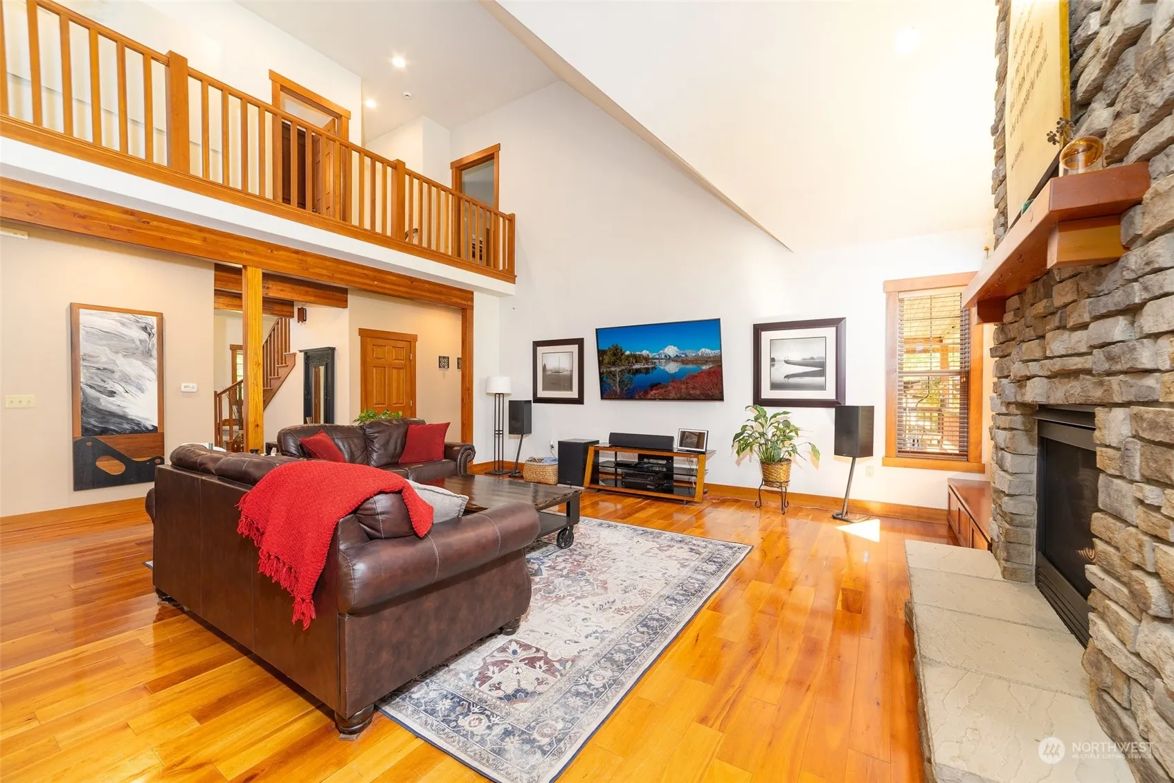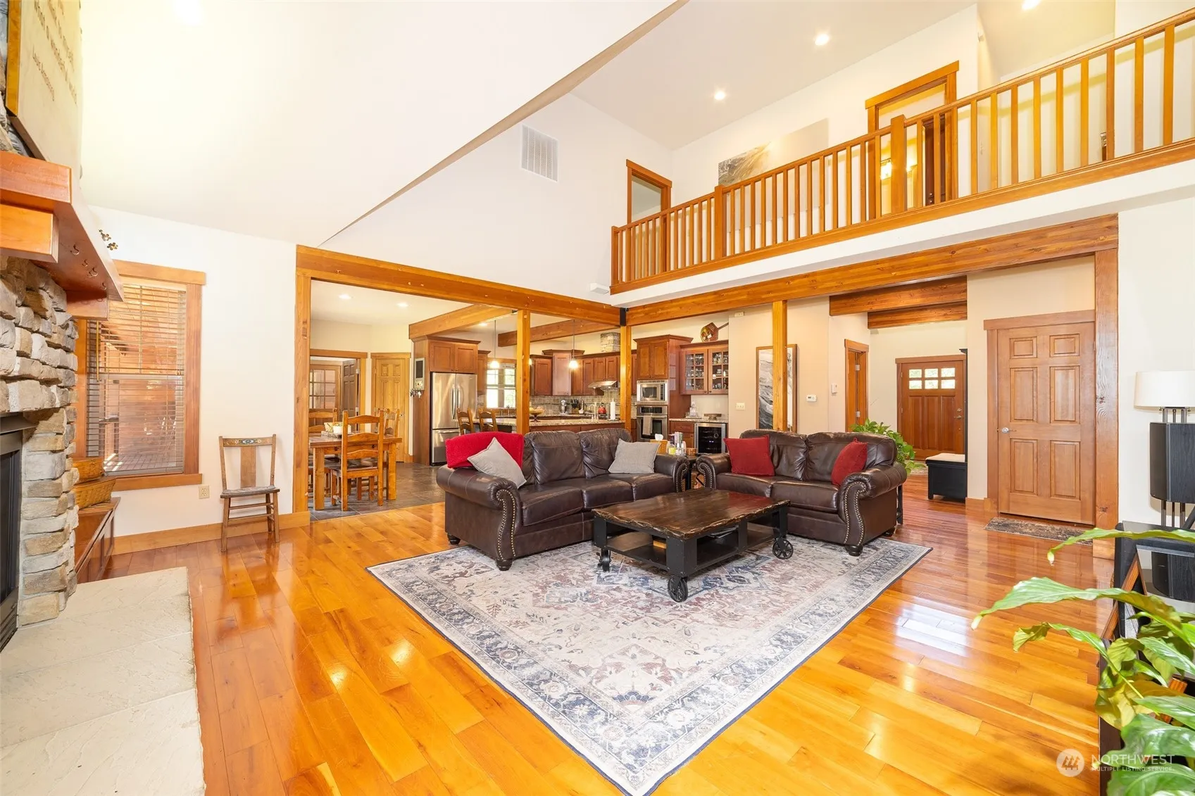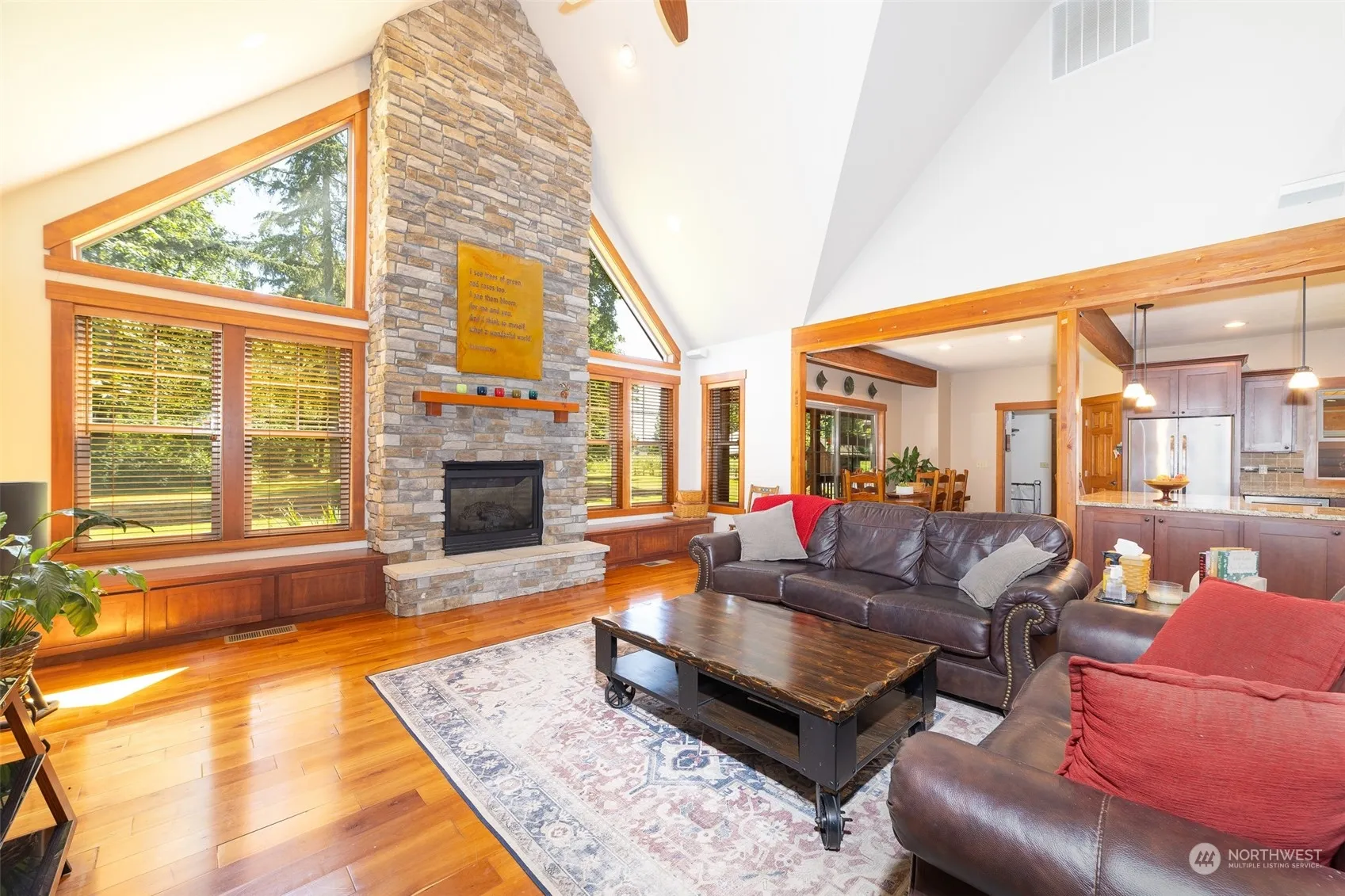 Discover your dream home nestled in the heart of Buckley! This beautiful custom estate, set on 2 private, park-like acres, offers the perfect blend of luxury and tranquility. This meticulously maintained cedar craftsman-style home spans 2,752 sq. ft. across two stories. It features three large bedrooms and a den, all with new carpeting, and two and a half beautifully appointed bathrooms. The gourmet kitchen, a chef’s delight with granite countertops, slate tile flooring, and stainless steel appliances, seamlessly flows into the great room and dining area. The great room, with its floor-to-ceiling stone fireplace, hardwood flooring, and large windows, provides a warm and inviting space for relaxation. The primary suite, located on the main