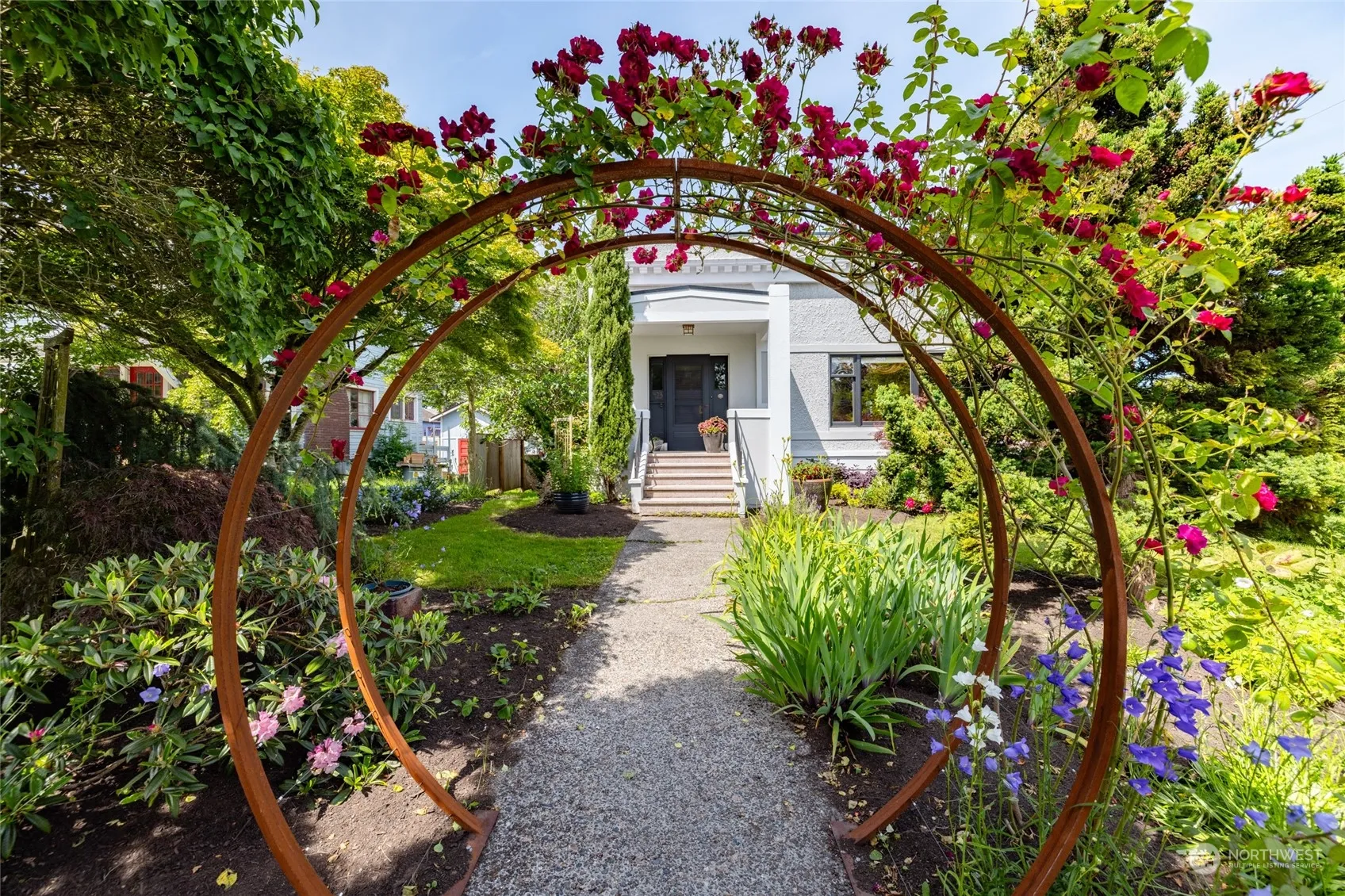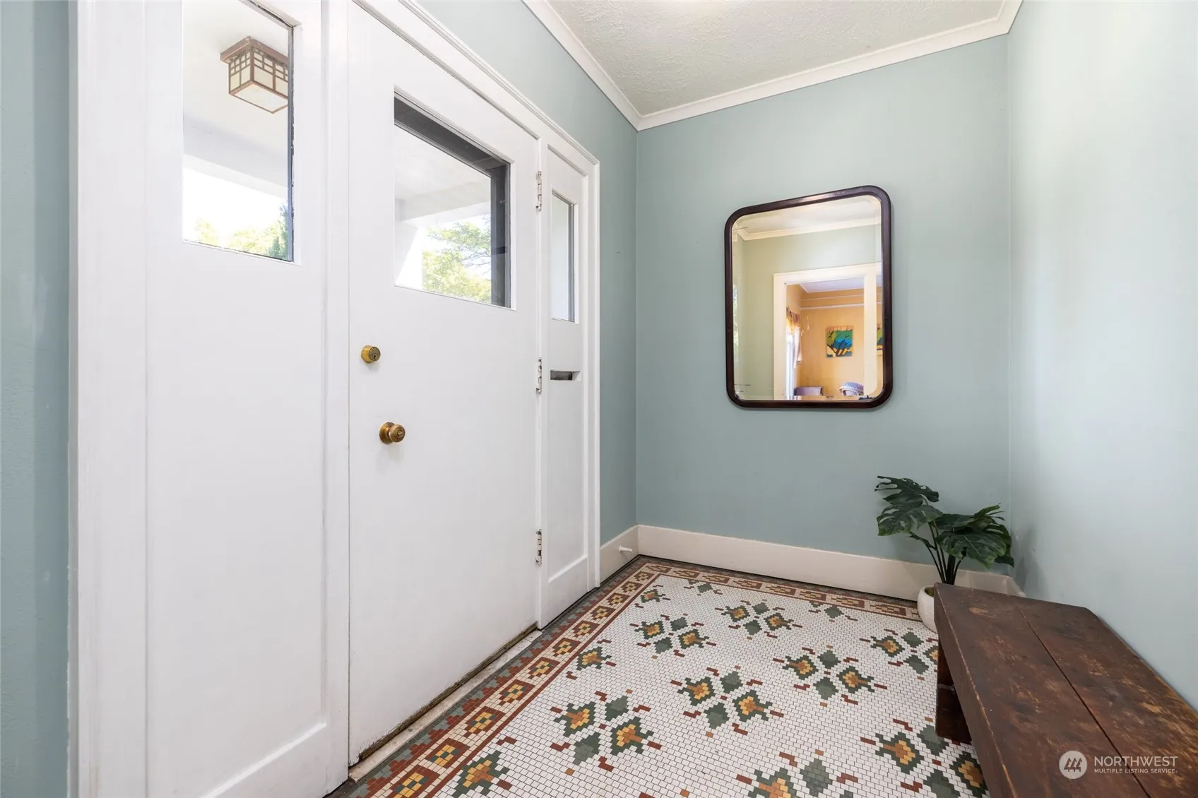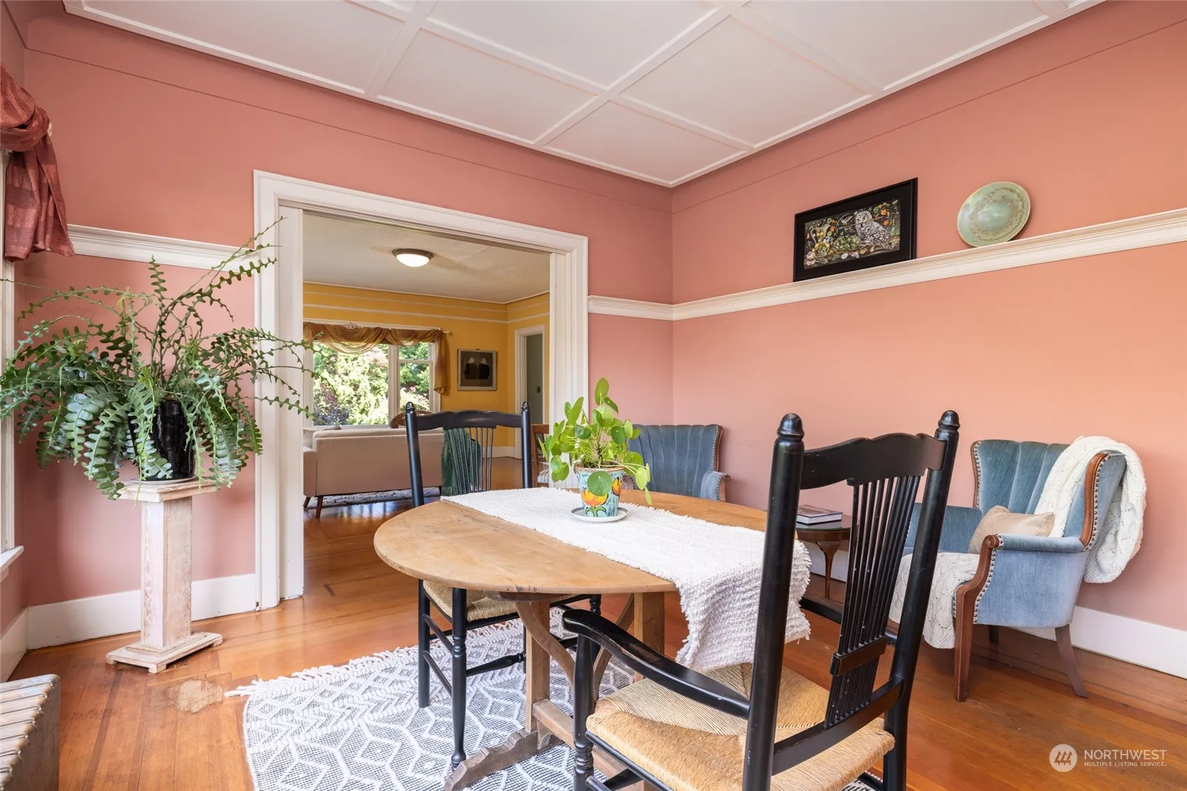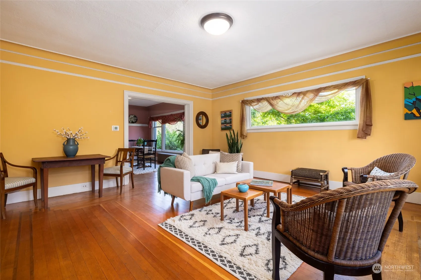 This historic, architecturally designed, 1919 Hollywood bungalow style home is such an eye catcher! Designed with thought and intention this home has more than its share of character, such as terrazzo porch, mosaic tile entry, old growth fir floors with cherry wood inlay border and an inglenook with custom stained glass windows by artist, Jack Archibald! The living and dining rooms are inviting with large windows that allow abundant light and look out over the mature landscaping. There are two large bedrooms on the main floor and the inglenook which could be used as another bedroom. The partially finished basement has room for a 3rd bedroom, shop, huge laundry room, 1/2 bath and tons of storage. You will love the vintage charm in this home!