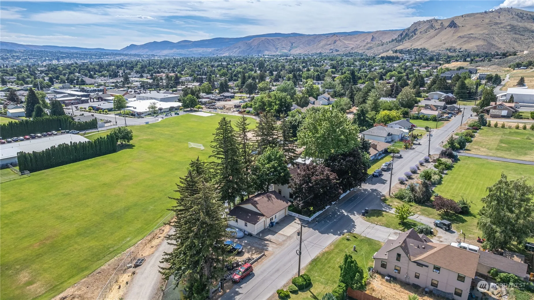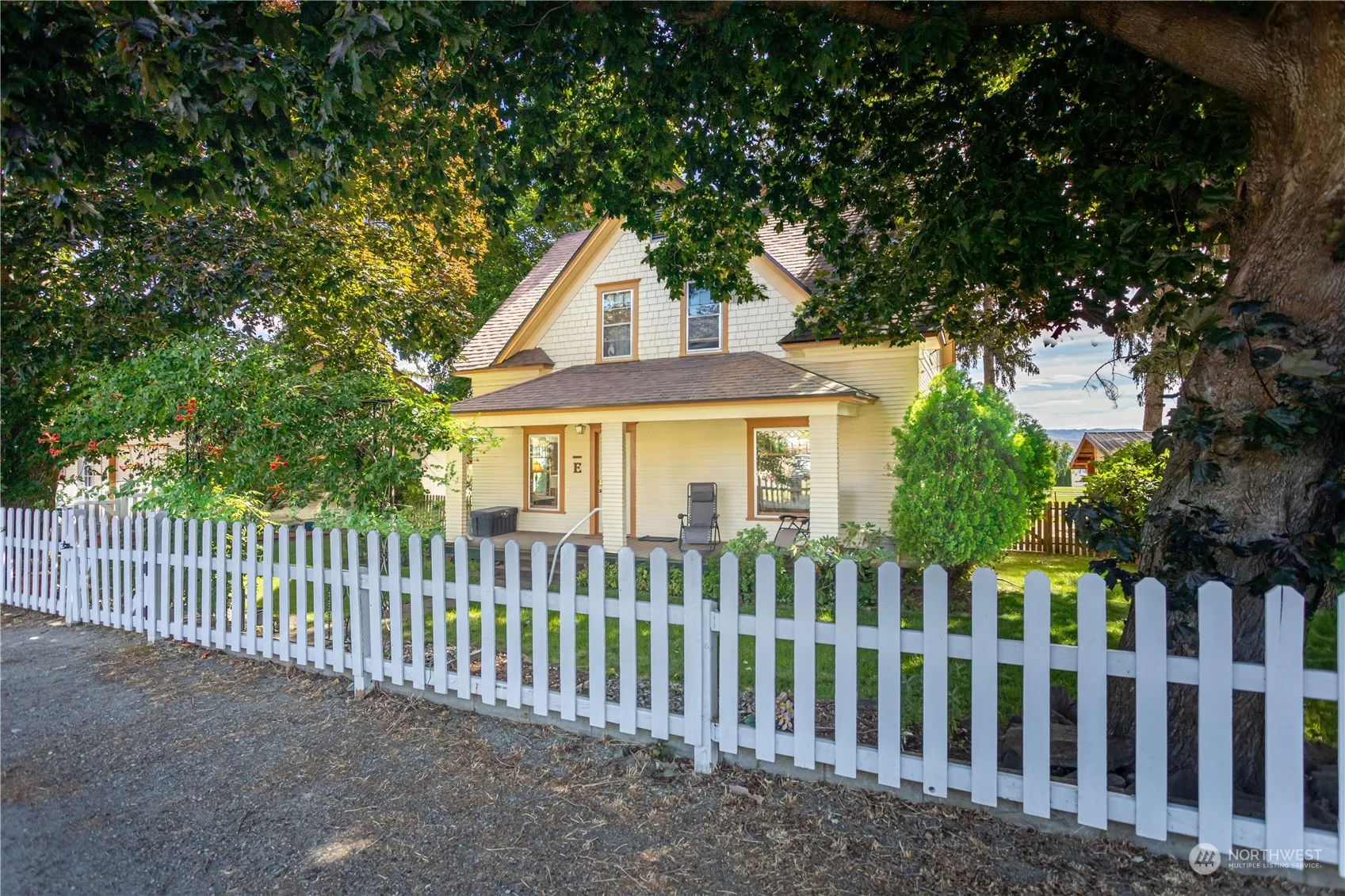 Charming 1907 historic home on a large half-acre lot along the canal, embodying early 20th-century design and grace. This well-maintained 4-bed, 2-bath, 2,380 sqft residence combines modern updates and timeless character, featuring original floors and windows. Some of the updates include plumbing, electrical, and a Vermont Casting wood stove. Fully fenced yard with a dog run, an 812 sqft detached 2-car garage with a bonus room that can easily be utilized as a home office. Ample off-street parking, dedicated RV space with a 30-amp hookup. Mature irrigated landscaping with maple and sycamore trees that shade the home in the heat of summer and allow sunshine in the winter. Territorial view of lush green school fields and East Wenatchee hills.
