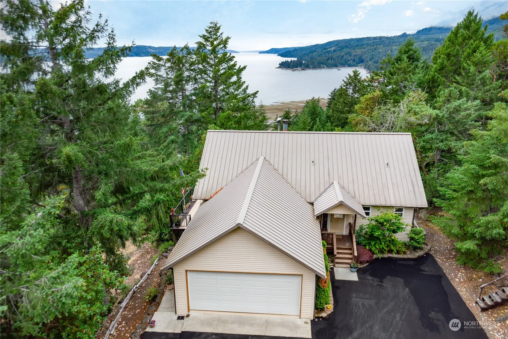 Incredible views! This 2,136 sqft 3 bed/2.5 bath custom built home is perched on 6.44ac. Relax and take in the sunrise and sunsets on the wrap around deck and patio. Watch the eagles, elk and birds of all kinds traverse the property with views from both levels of the home. The large kitchen allows for group cooking. The family room is a great spot for movie night with a wet bar and microwave. A green house with water and power along with garden to grow your own. Deeded beach access located a mile down Hwy 101 for shellfish harvesting. Ideally located for boating and hiking. High speed fiber available. Home wired for a generator. No HOA.