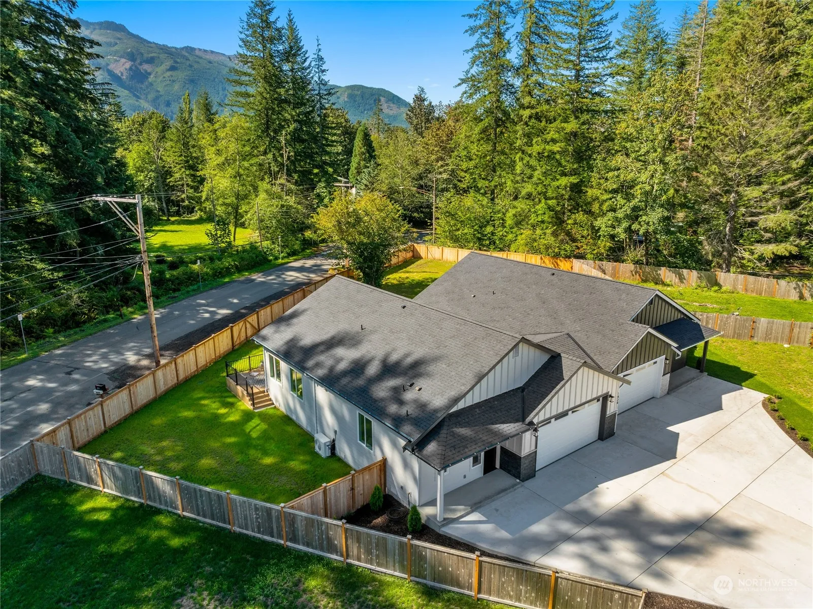 Gorgeous brand new 1 story home on spacious fully fenced lot on quiet cul-de-sac in a beautiful neighborhood surrounded by lovely mountain views. You are just minutes to Wallace Falls, as well as so many recreational opportunities like hiking, skiing, boating, and fishing. The designer kitchen in this home offers stainless appliances (including fridge), quartz counters & plenty of prep space. The eating space off of the kitchen leads out to a deck that is perfect for entertaining or just relaxing. You will love the easy maintenance LVP floors in the main living spaces and the beautiful tile that complements the beautiful bathrooms. Mini Splits will keep you cool in the summer and warm in the winter.
