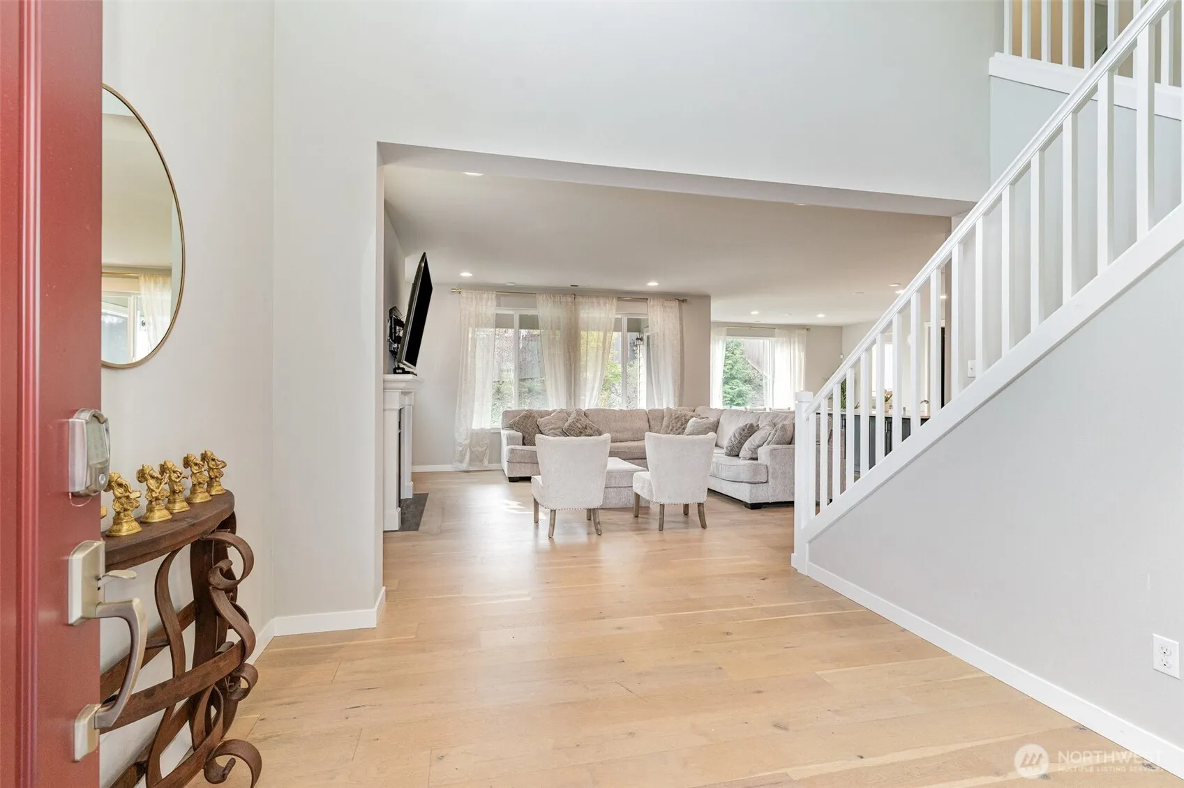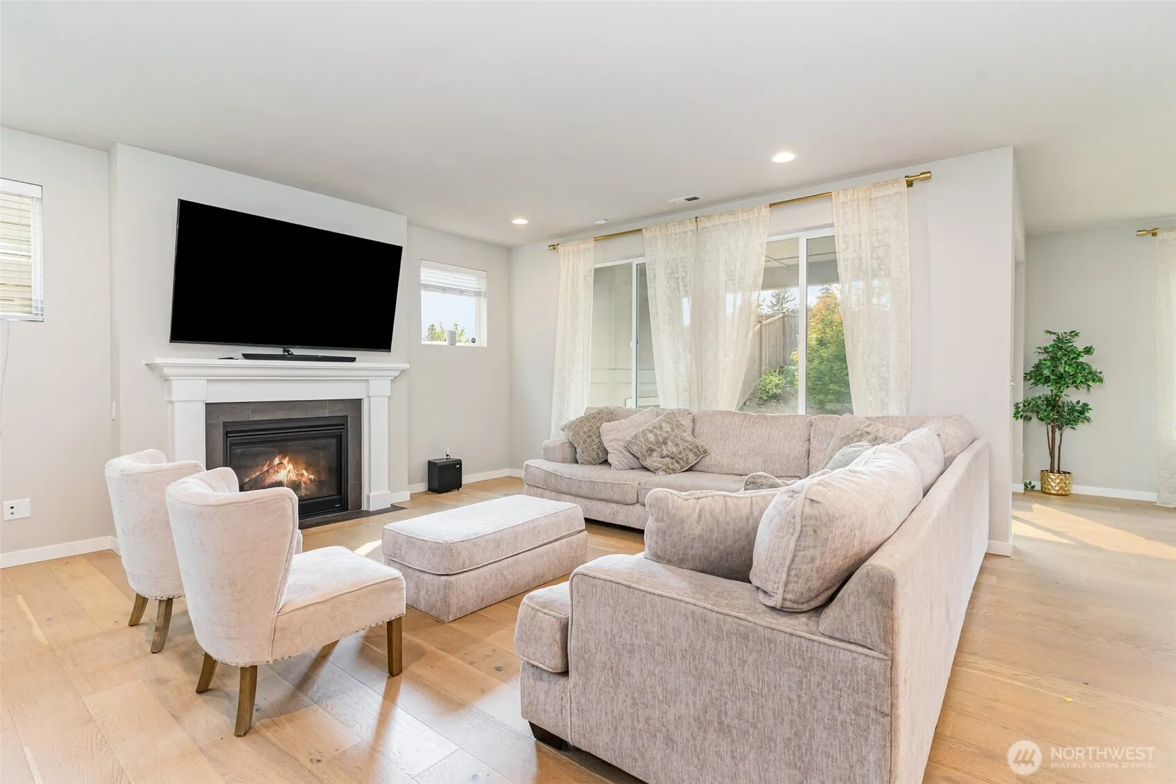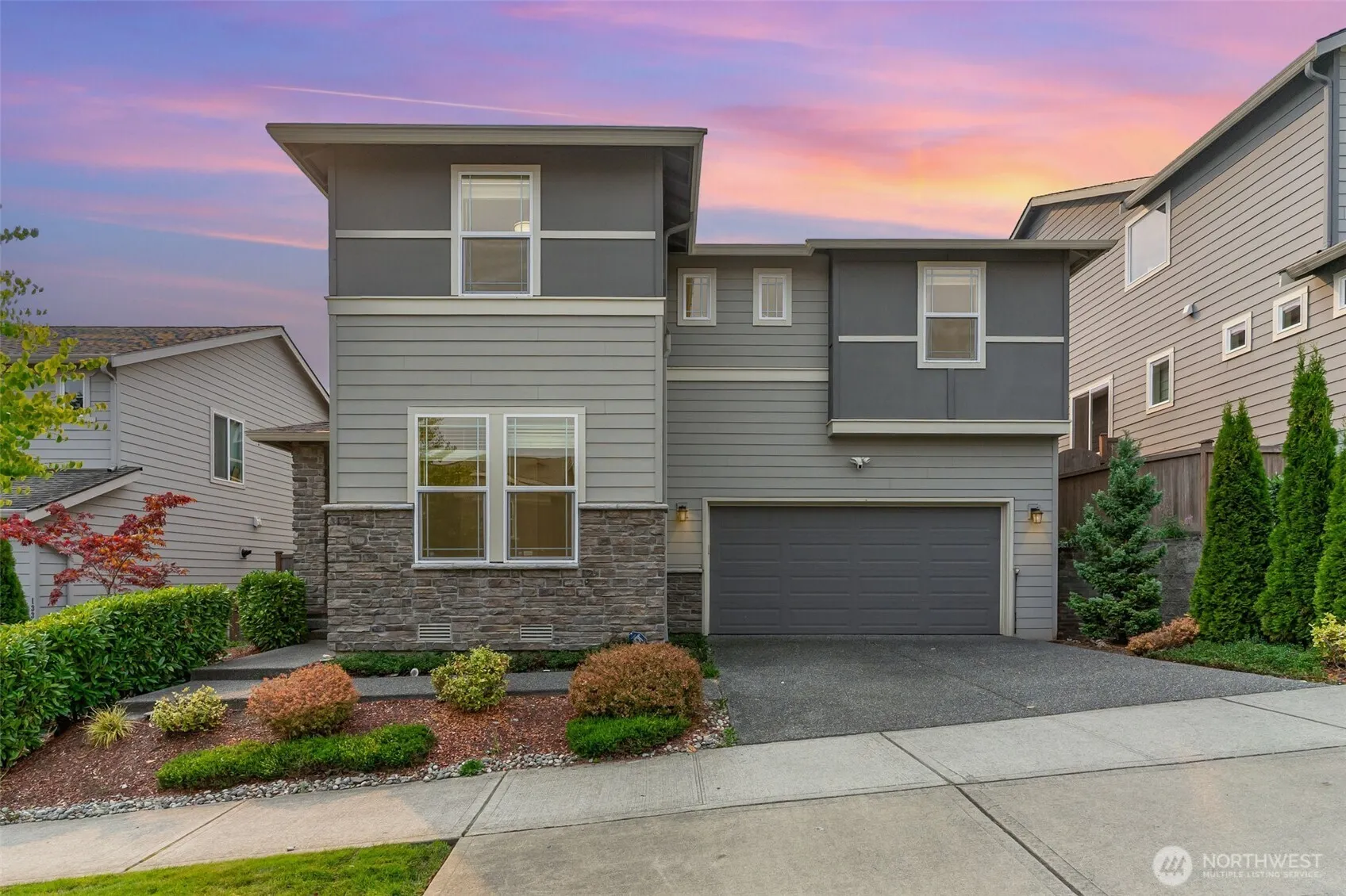 Blending modern design with comfort, this EAST-facing Pulte home is built for today’s lifestyle. The chef’s kitchen features a sweeping island, large dining room, and walk-in pantry, while a downstairs bedroom with full bath offers versatility for multi-generational living. A main floor tech space adds functionality. Inside, enjoy soaring ceilings, upgraded flooring, and abundant storage. Retreat to the primary suite with sitting area, 5-piece spa bath, and custom shelving. Outdoors, a covered patio with fireplace creates year-round enjoyment. The garage has 220V ready for EV charging, while the entire house is wired with Cat6 Ethernet and Coax. Minutes from shopping, dining, and community trails, this home has it all.