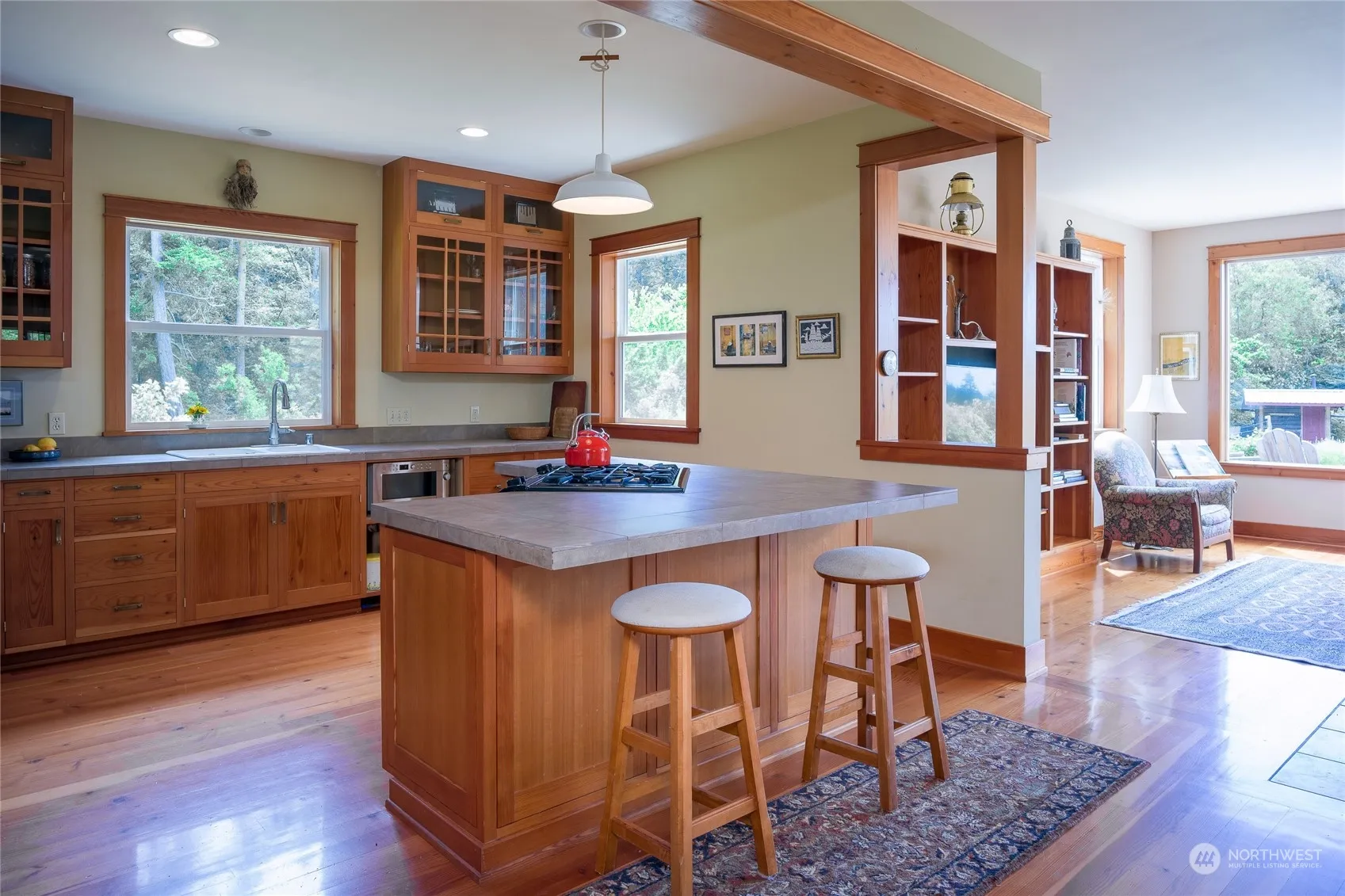 END OF THE LANE PRIVACY from this well-built 2 bedroom, 2 bath home on 9 acres. Fir floors add a natural warmth throughout. Lots of windows make it light & bright coupled with garden & pastoral views. Welcoming great room with hand-crafted fir kitchen cabinets, clear fir doors, trim & bookcases plus central wood stove. Passive solar design. Generous primary bedroom. Over 2000 sqft heated, insulated & plumbed shop with oversize doors perfect for many types of projects including building a sailboat. Deer fenced yard & garden with sauna in the backdrop. Hidden tiny studio in the woods. Located in the middle of the island, convenient to everywhere.
