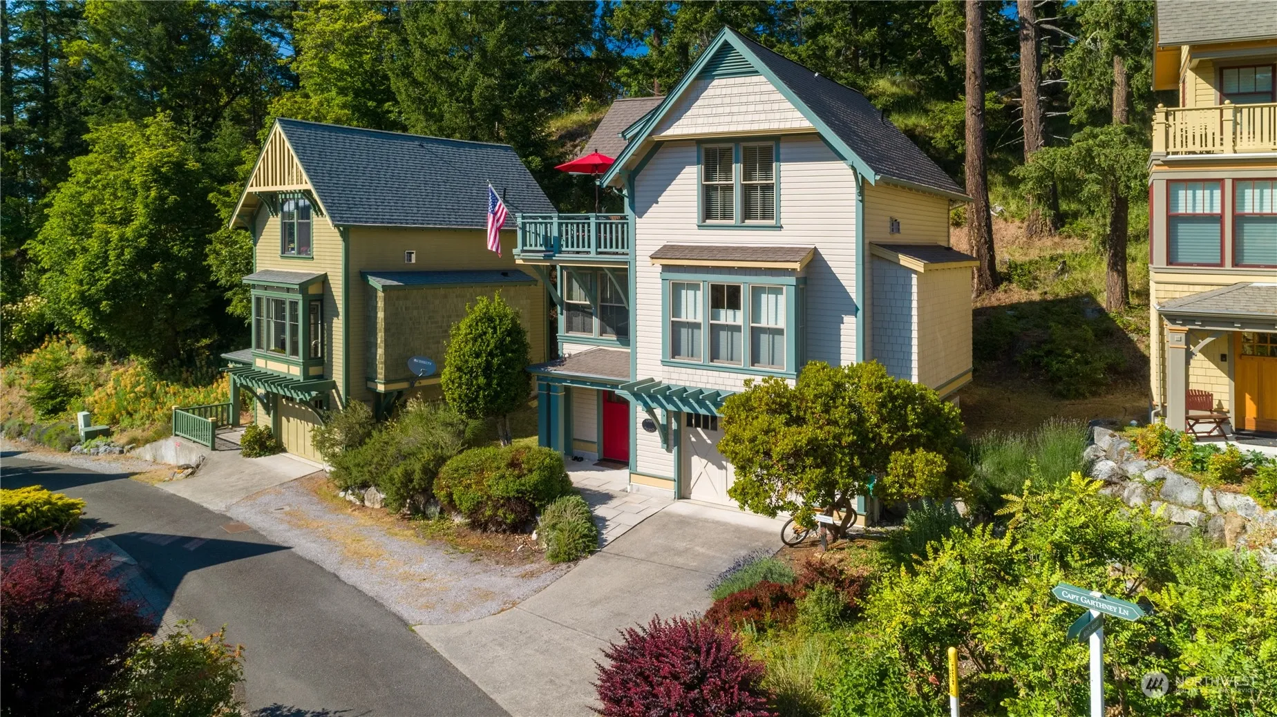 Live in the heart of Roche Harbor Resort! Walking distance to the many amenities of Roche Harbor, including restaurants, marina, airstrip, pool, tennis/pickleball, etc. This home offers two bdrms plus sunroom/den/office, 2.5 baths, and 1 car garage. Main living spaces on top floor for views and privacy. Special features are an expanded upper deck with view of the harbor, an extra 1/2 bath off living area, and new furnace/heat pump/AC. Fiber internet. Backs to hillside open space covered with native plants. Home has never been rented and is in excellent condition. If you want to rent as an investment or to offset your vacation home expense, it can be rented nightly through Roche Harbor. Similar rentals have grossed over $60,000/yr.