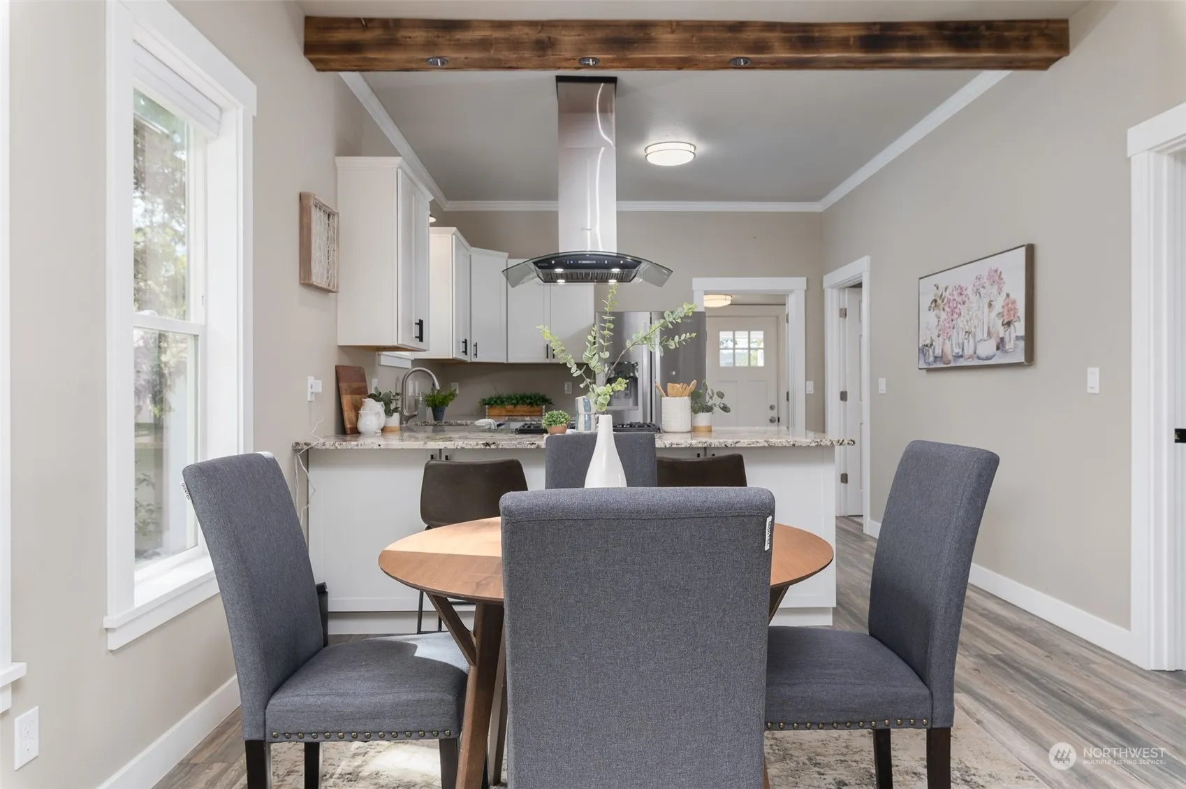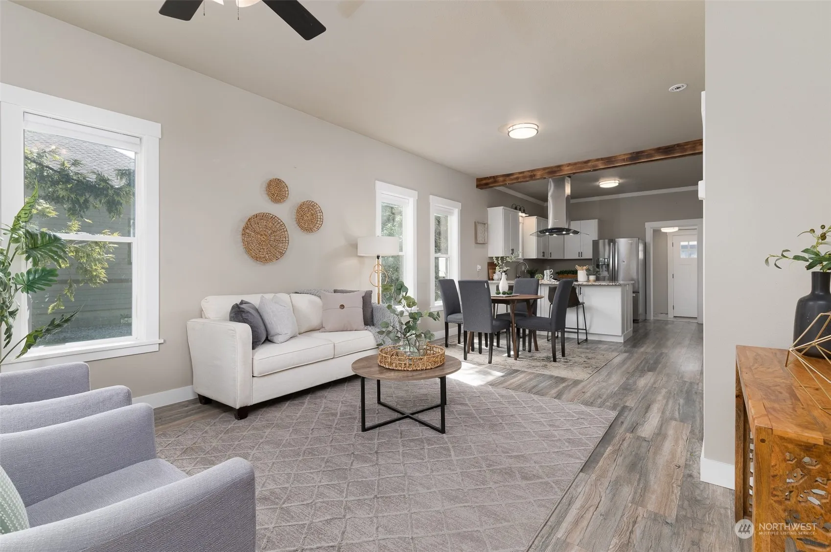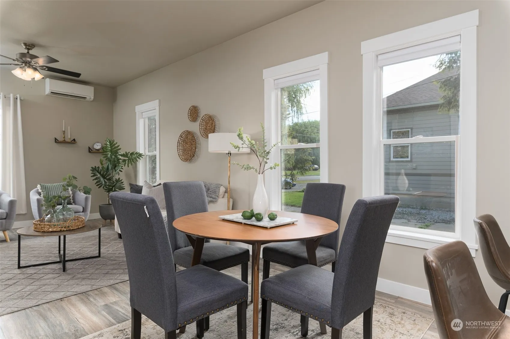 Absolute charm in this 2 bd 1 bath fully remodeled turn-of-the century home on huge over 14,000 sq ft lot! Beautiful laminate wood flooring throughout, tall ceilings & windows, & completely updated kitchen. Granite, stainless steel appliances, & eat-in bar all open to dining/living room from kitchen. 2 good size bedrooms w/built in closets plus full bathroom complete this well laid out floor plan. Sunny utility room w/newer included washer & dryer leads to huge backyard. Lower patio w/cozy firepit perfect for enjoying summer nights. Alley access to newer shop w/tall ceilings for extra storage. Topped off w/another garden shed & playset – this property & home are ready for new owners!