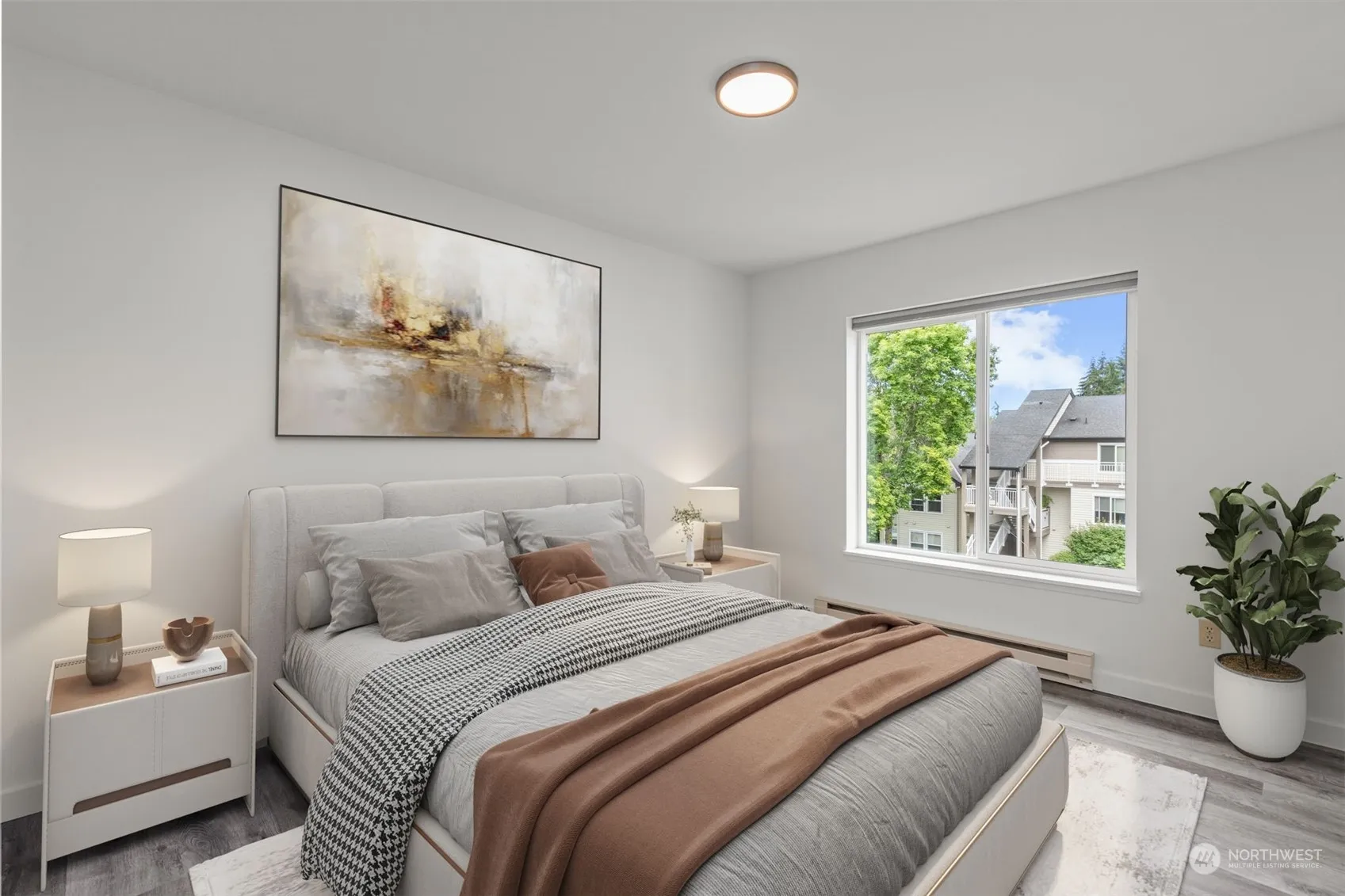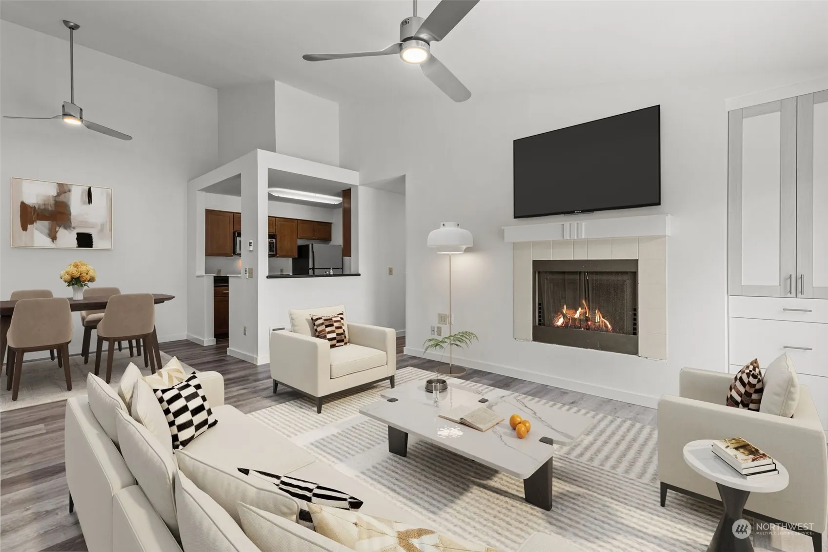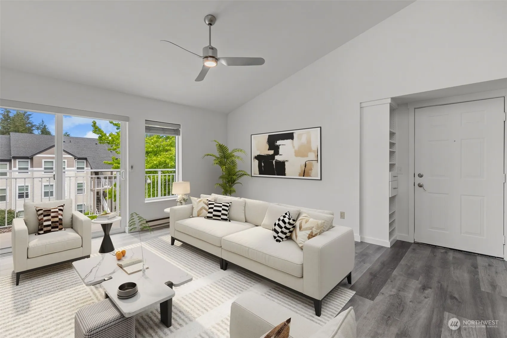 Impeccable top floor three bedroom, two bath condo with vaulted ceilings, huge windows and tons of natural light! New floors & paint throughout make this bright spacious unit feel brand new! Well-appointed kitchen w/granite counters, stainless appliances & huge pantry. Open concept living & dining area, cozy fireplace & large private deck. Enjoy the primary bedroom with full bath, walk-in closet, and nook. The additional bedrooms are both large w/ample closet space & shared bath w/double sinks. Don’t miss the full-size laundry w/storage, as well as the many extra storage areas throughout this home. Best of all, this home includes a garage and a dedicated parking spot. Amenities include outdoor pool, indoor pool, clubhouse, game room & gym.
