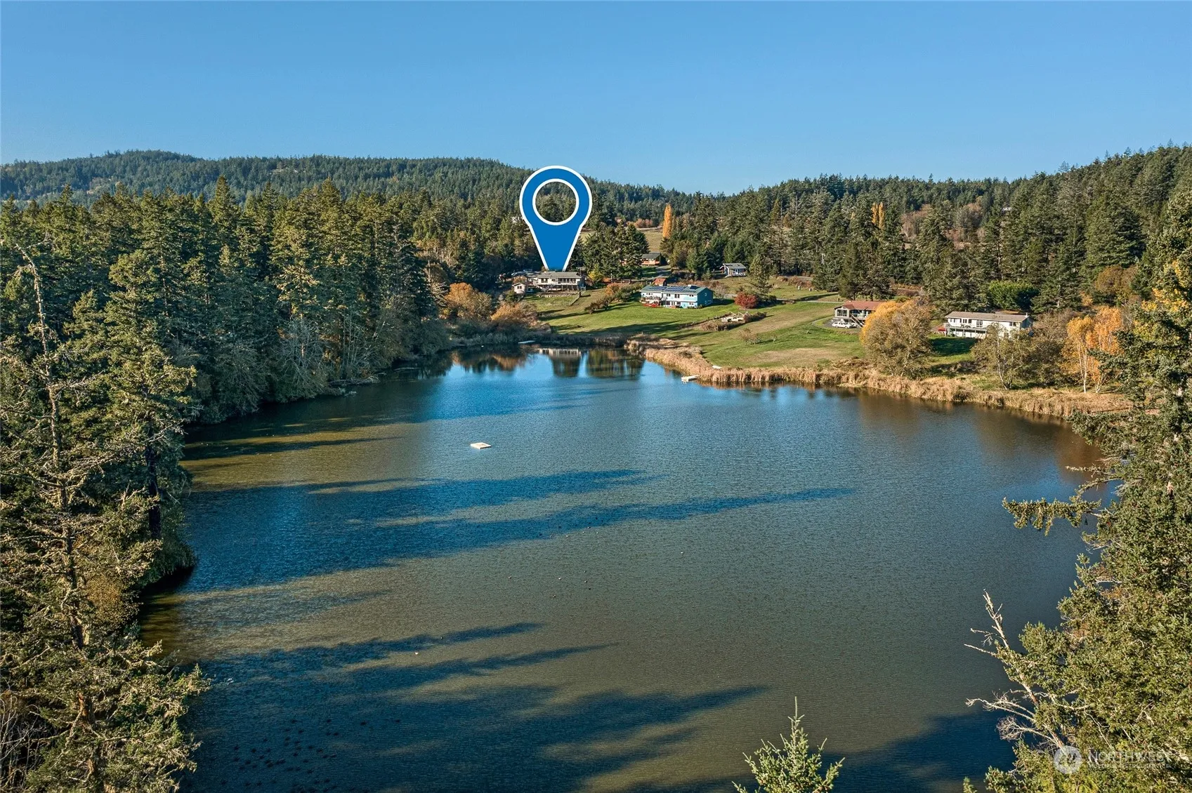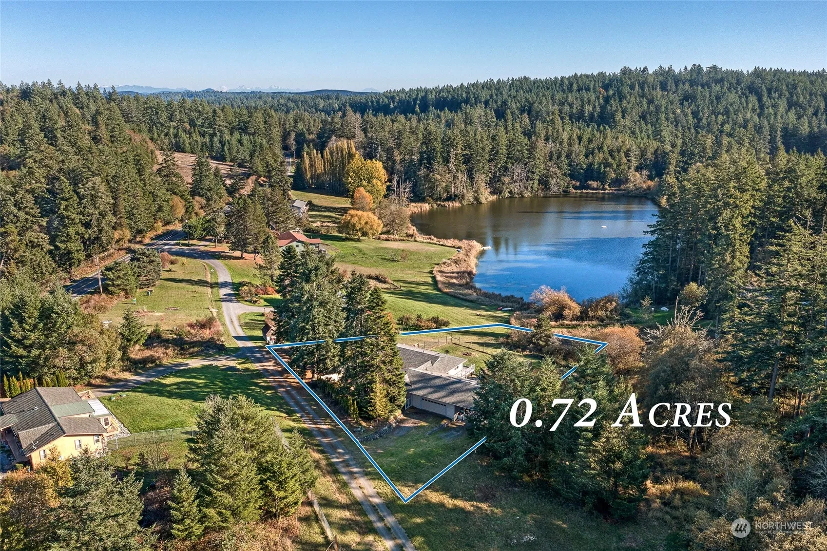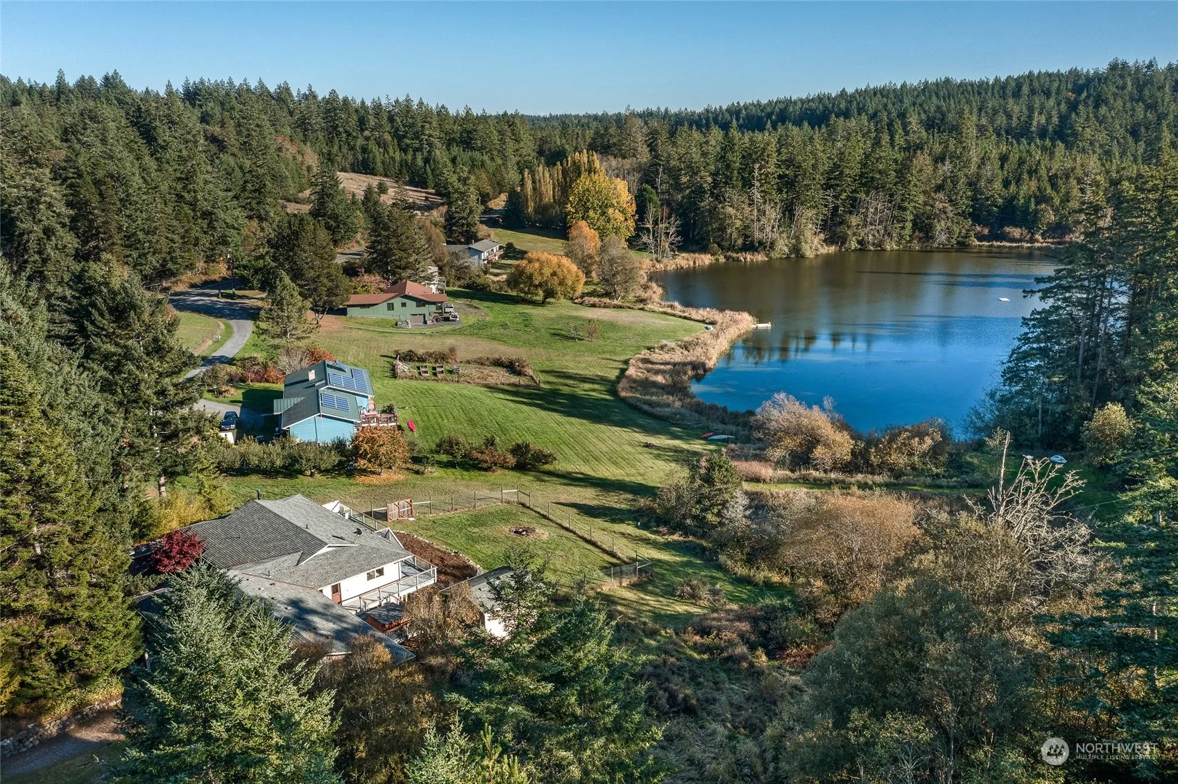 Welcome to this sun-drenched lakefront home, featuring south-facing sun and versatile spaces. Nestled on a dead end road, this home offers abundant natural light, stunning lake views, and a tranquil entrance courtyard. The fenced yard and garden area provide privacy, security, and space for outdoor activities. The large studio and finished outbuilding offer flexible spaces for a home office, art studio, or guest suite. Enjoy storage in the mechanical room, a two-car garage, and covered RV storage. The community lake allows fishing, swimming, and boating, all just a short distance from town amenities.