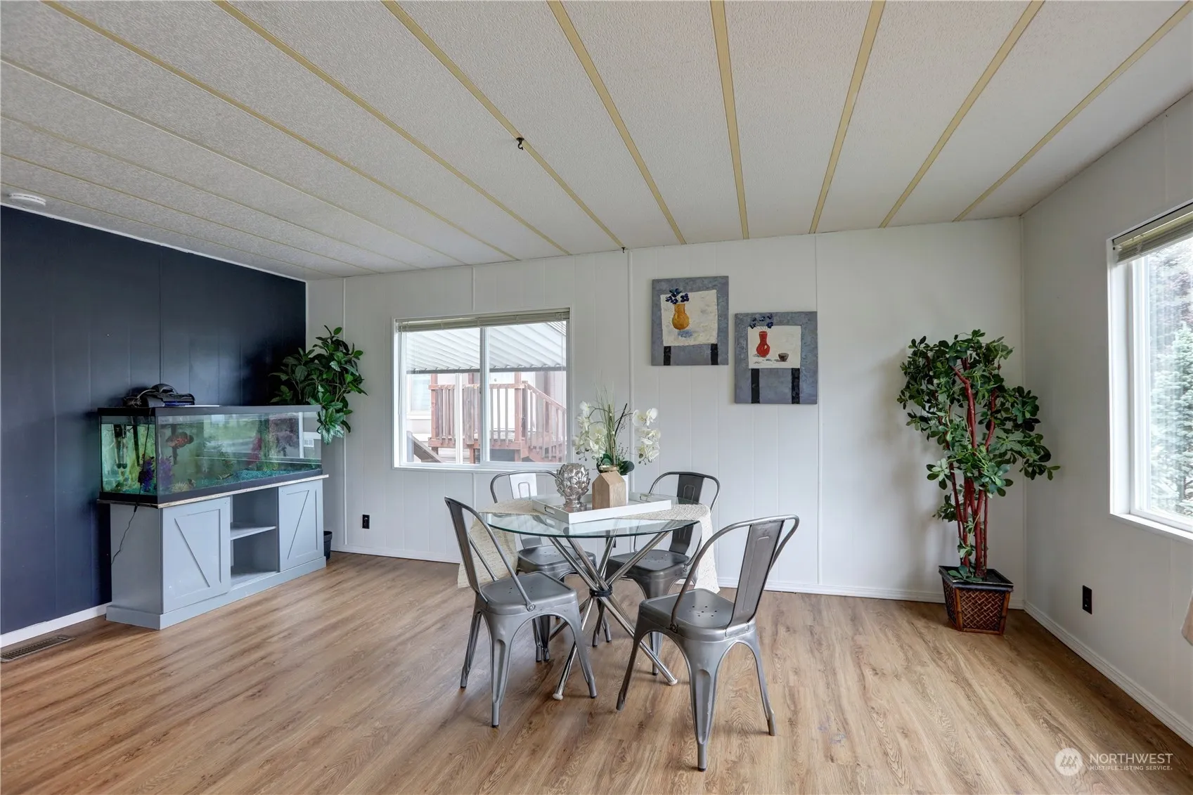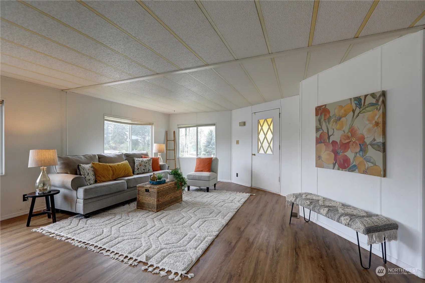 Great location in Duvall Highlands mobile home Park! This 3 bedroom home sits up at the top of the park looking out to sunsets & Mount Rainier. Plumbing all replaced in 2008. Covered porch deck and metal roof is from 2007. Large fenced backyard and a shed with electricity. Vinyl wrapped windows. All appliances stay. No age restrictions park.