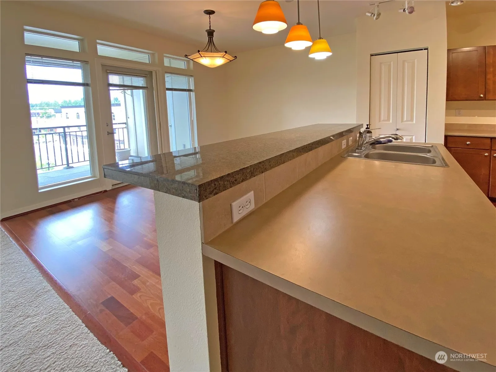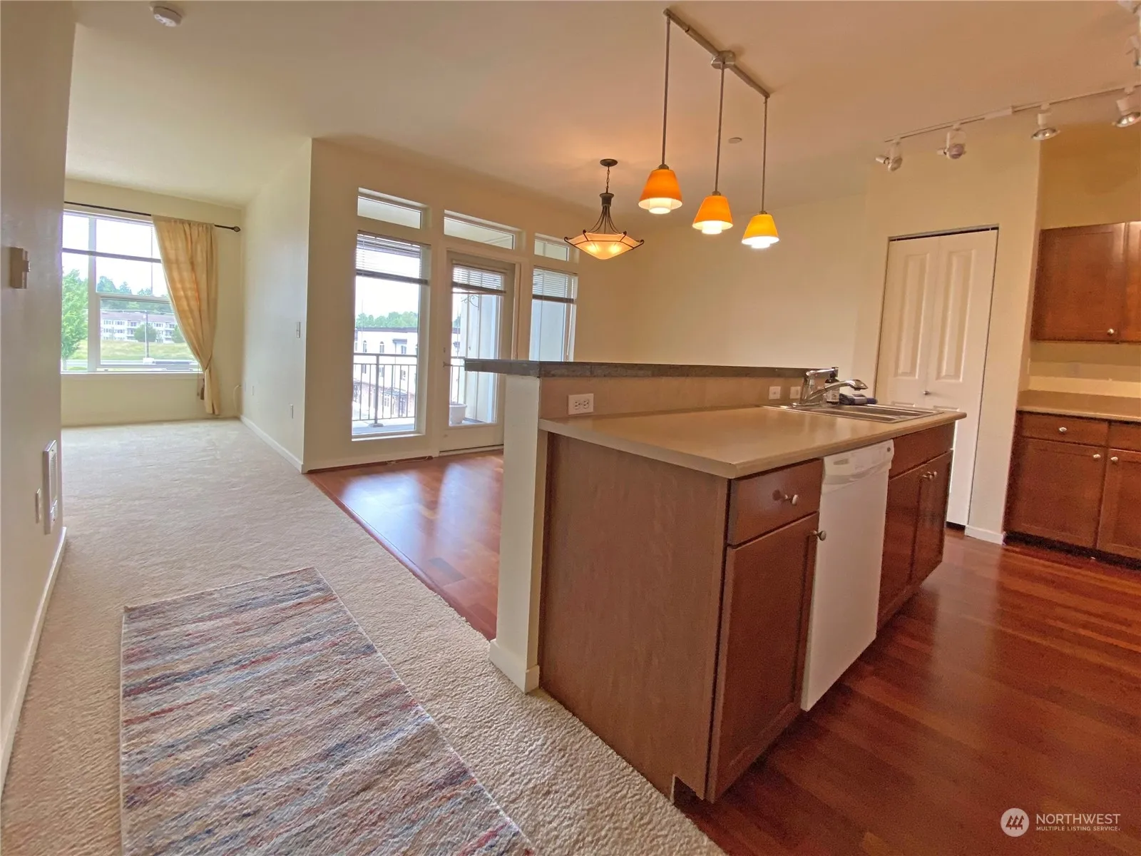 Fabulous one-bedroom, west facing, top floor condo with a den in the secured Village Commons near shopping, restaurants, medical offices and bus line with a direct line to downtown Seattle. Enjoy beautiful sunsets from the cozy living room with a gas fireplace and a light and bright kitchen with eating space and a dining room. Primary bedroom includes a large walk-in closet. All appliances stay including washer and dryer. The spacious courtyard has a bbq area with seating. Also included is a game room, board room, library and secured entry/mail room. There are walking trails nearby. HOA dues include gas, water, sewer and garbage. This condo also includes one secure parking spot and storage for bikes.