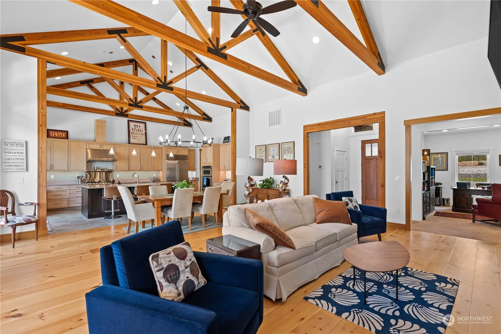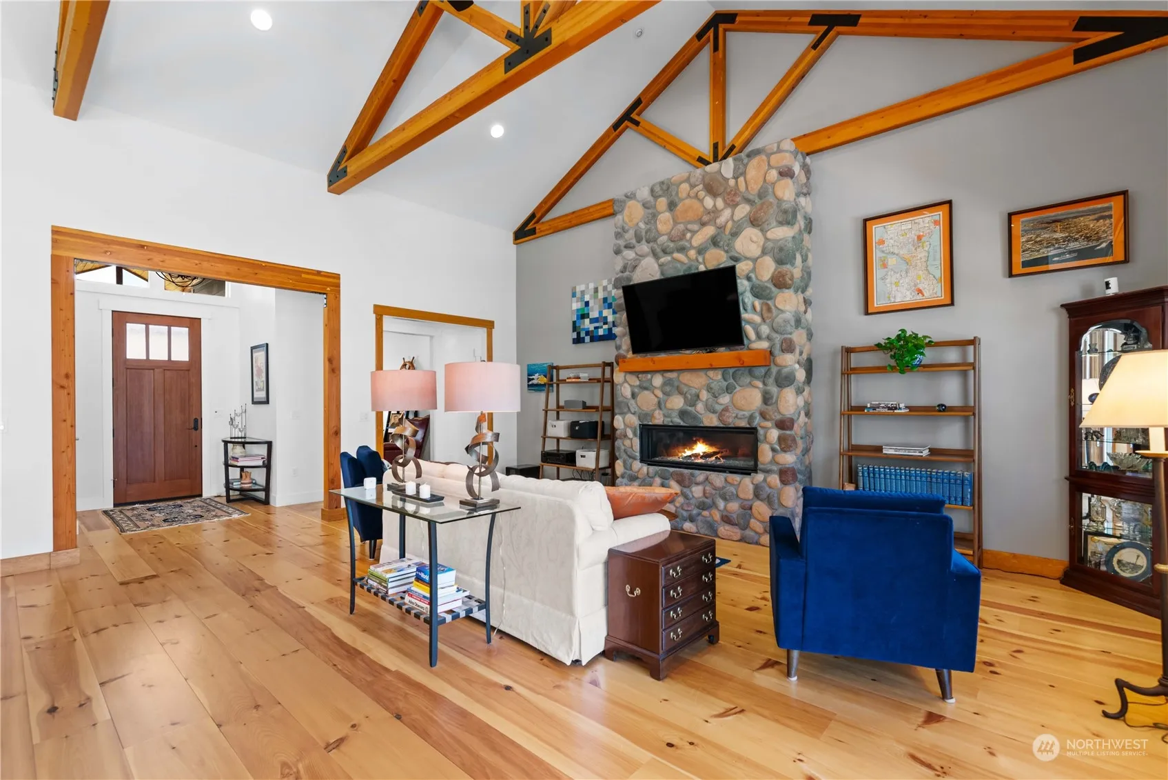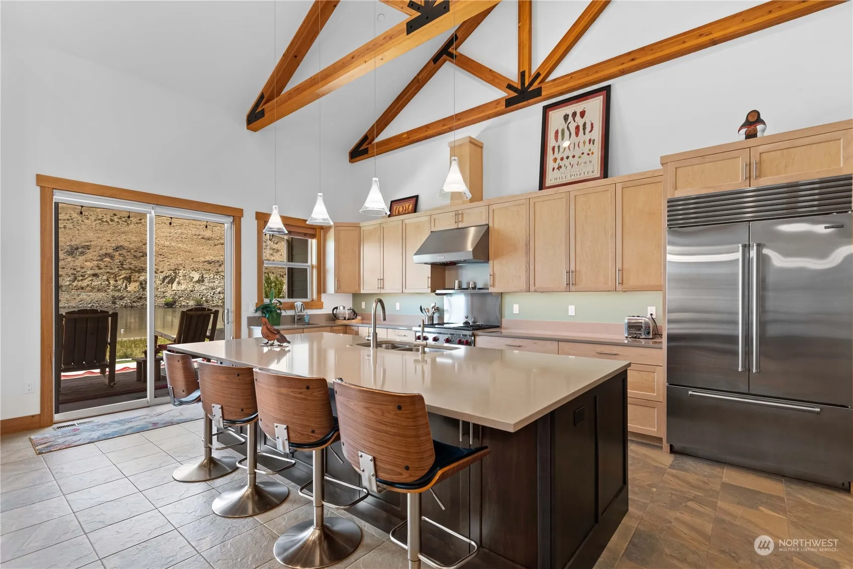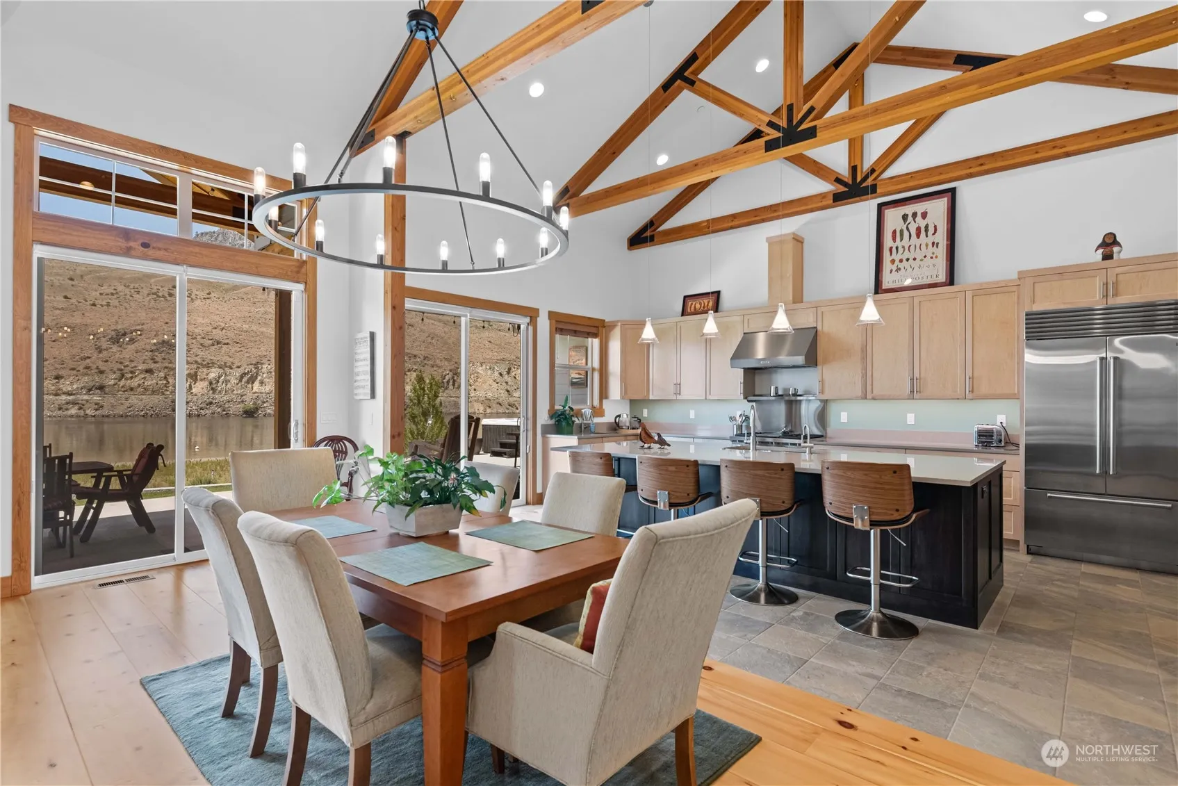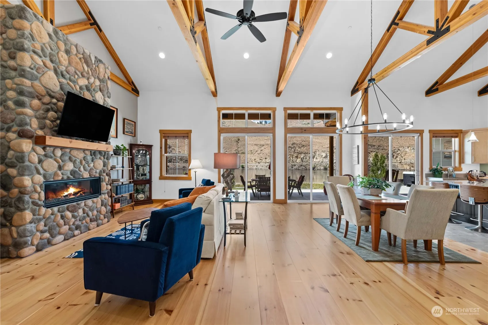 Custom 2 year old Harkey rambler boasts Columbia River waterfront & beach! Entertain in the great room w/ soaring ceilings, exposed beams & wide plank wood floors. Chef’s kitchen featuring high-end appliances (Sub-Zero/Wolf/Miele/Fisher-Paykel/Franke), heated tile floors & massive quartz island. Soak in the hot tub or swim spa when you wake up, spend the day on the beach w/ a tranquil swimming hole or unhook your boat from the buoy. Rinse off in the outdoor shower then wrap your day up on the covered patio & watch the sun set over the mountain. Quality construction & attention to detail in every room (lighting, wired for indoor/outdoor speakers/security/TV, water softener, storage). 1204sf 3-car garage & boat storage for all your toys!