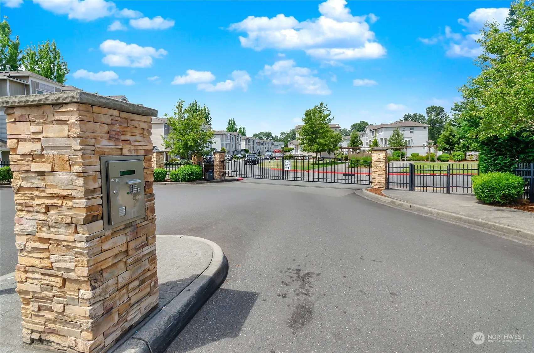 Prime location in Stonebrook a gated community, great for commuter and close to shopping. 2 bedrooms 2 1/2 bath home with oversized 2-car garage w/remote access. Low HOA dues with a secure gated entry make ownership stress free. Home features an open floor plan, fresh interior paint and carpet, tiled island kitchen w/stainless steel appliances, with a balcony off the eating area. Upstairs find 2 sizable bedrooms, a vaulted ceiling in the primary suite, washer & dryer, and a great well lit space for a home office. Patio in private backyard thru man door in garage. Property features a tot lot, sport court and a nice picnic area.