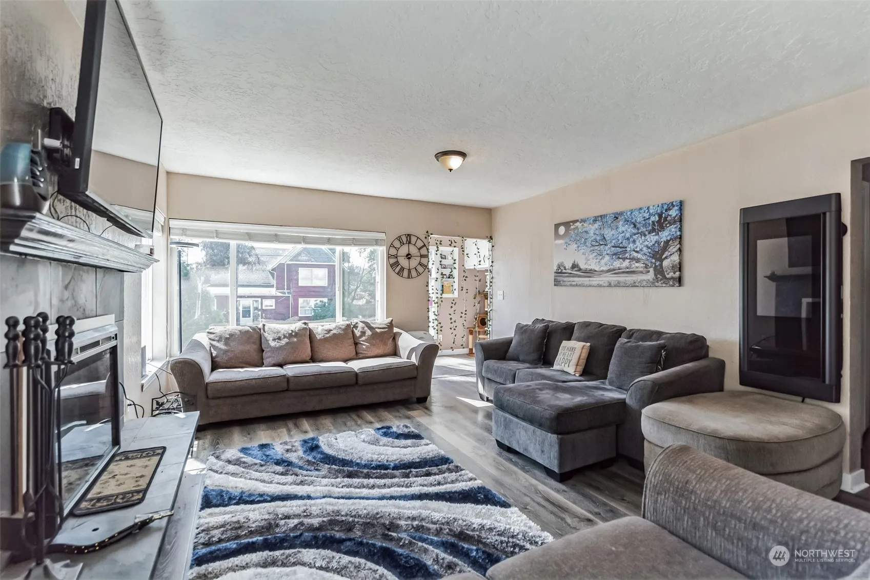 Welcome to your new home! The combination of a spacious living room with a wood fireplace and natural lighting is perfect for relaxing after a long day. The addition of a covered outdoor living space with a fireplace takes relaxation to the next level, allowing you to enjoy the outdoors while staying warm and toasty. Have you been wanting to get back to a gym but can’t find the time? No worries! Attached to the wall in the living room is a Tonal. This machine has everything you need to reach your fitness goals. Google Tonal to see more. The garage provides ample space for parking and storage, keeping your belongings organized and out of the way. Overall, this home seems to have it all!