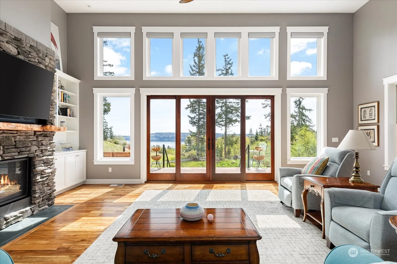 Unlock a NW retreat–set atop 6.7 park-like acres w/in Whidbey Island’s coveted Rain Shadow. Meticulously curated & custom built, it’s sophisticated & welcoming, w/thoughtful details & luxe finishes. Highlights include; 3,490 asf (mainly 1-level living), bathed in natural light, 4 oversized bdrms, separate office + versatile flex space. The open, epicurean kitchen has custom cabinetry, granite counters, top-tier appliances & ample storage. The Great room has 15’ ceilings, handsome acacia floors, & wall of windows framing the glittering vistas & seamlessly blending interior space w/al fresco design. Wow! Add in miles of community trails, wired for generator, 3 car garage, central A/C, entertaining/view deck(s) & MORE? Unplug. Unwind. Divine.