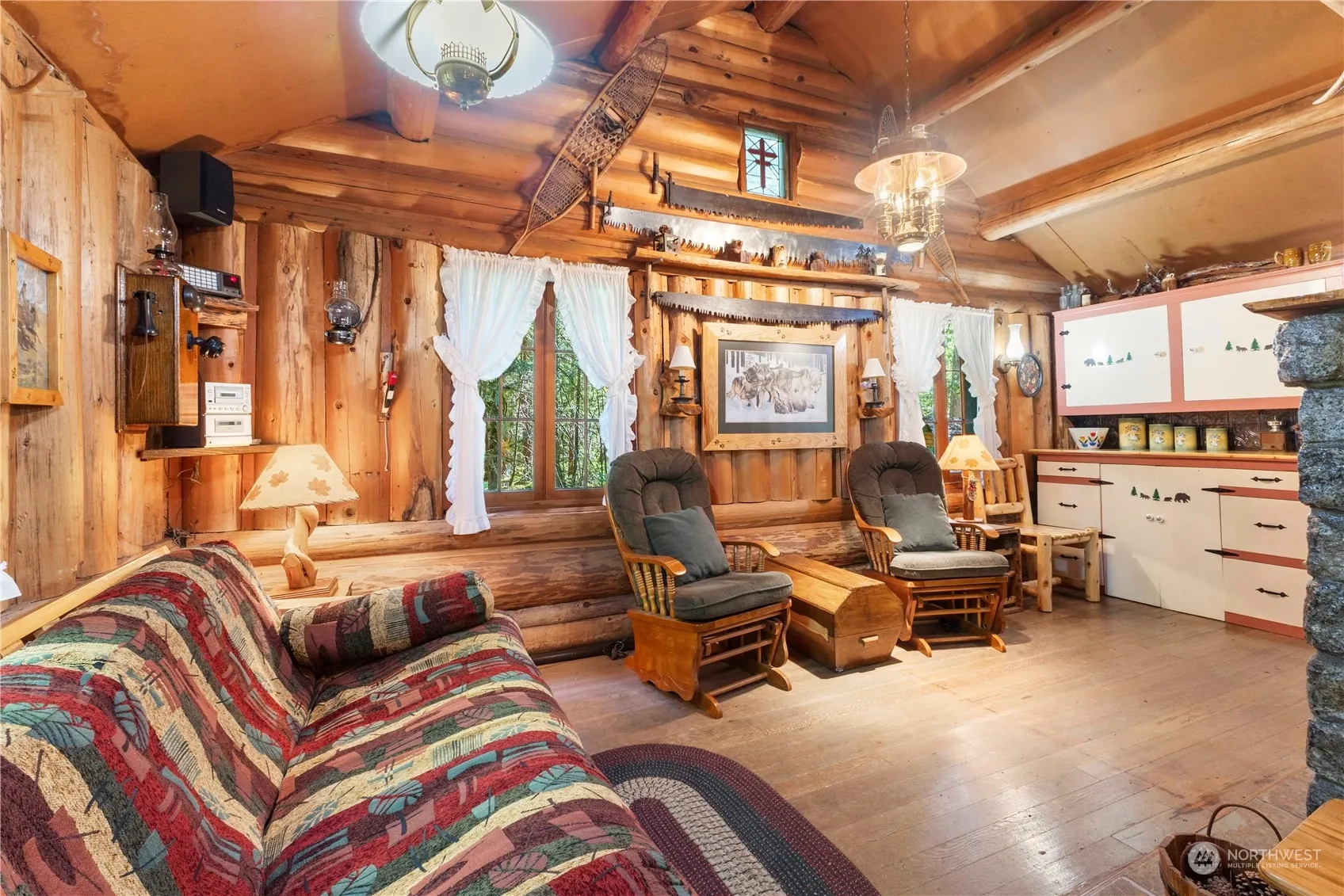 White River Cabin #9. Well appointed, small but mighty, Forest Service log cabin just 15 minutes from Crystal Mountain. Timeless old growth setting close to The Dalles Campground. First time on the market since it was built by current owners in 1940. Well loved and maintained, with hand-made furnishing throughout the cabin. Skiing, hiking, biking and stargazing, something to keep you busy in every season of the year. Beautiful wood burning fireplace and stove keep the cabin toasty warm on cold nights. Studio bedroom on main floor and sleeping loft for expanded seating/sleeping area. Large woodshed, firepit and outdoor handmade BBQ. This cabin is the perfect quick get away. Water & Septic. Cash only;leased on Forest Service land.