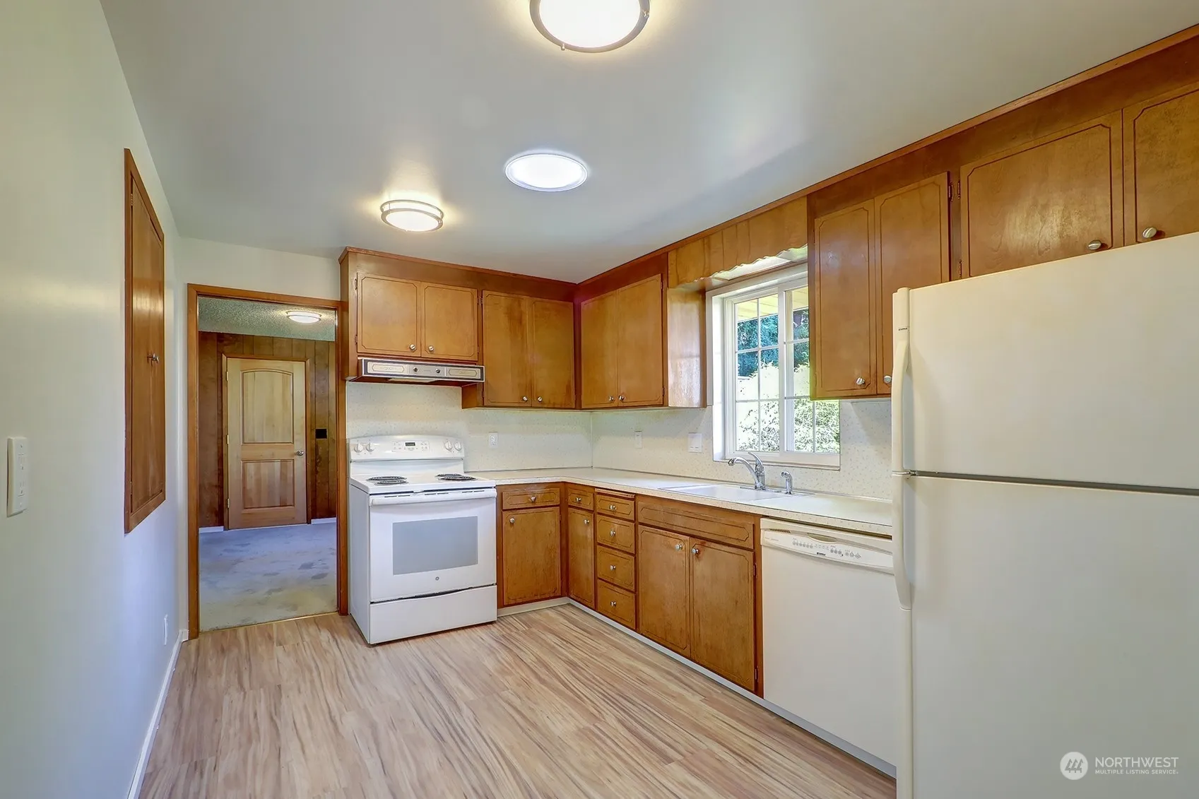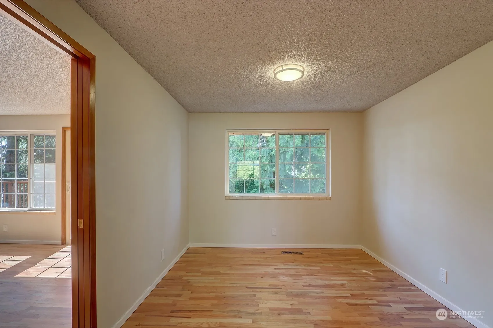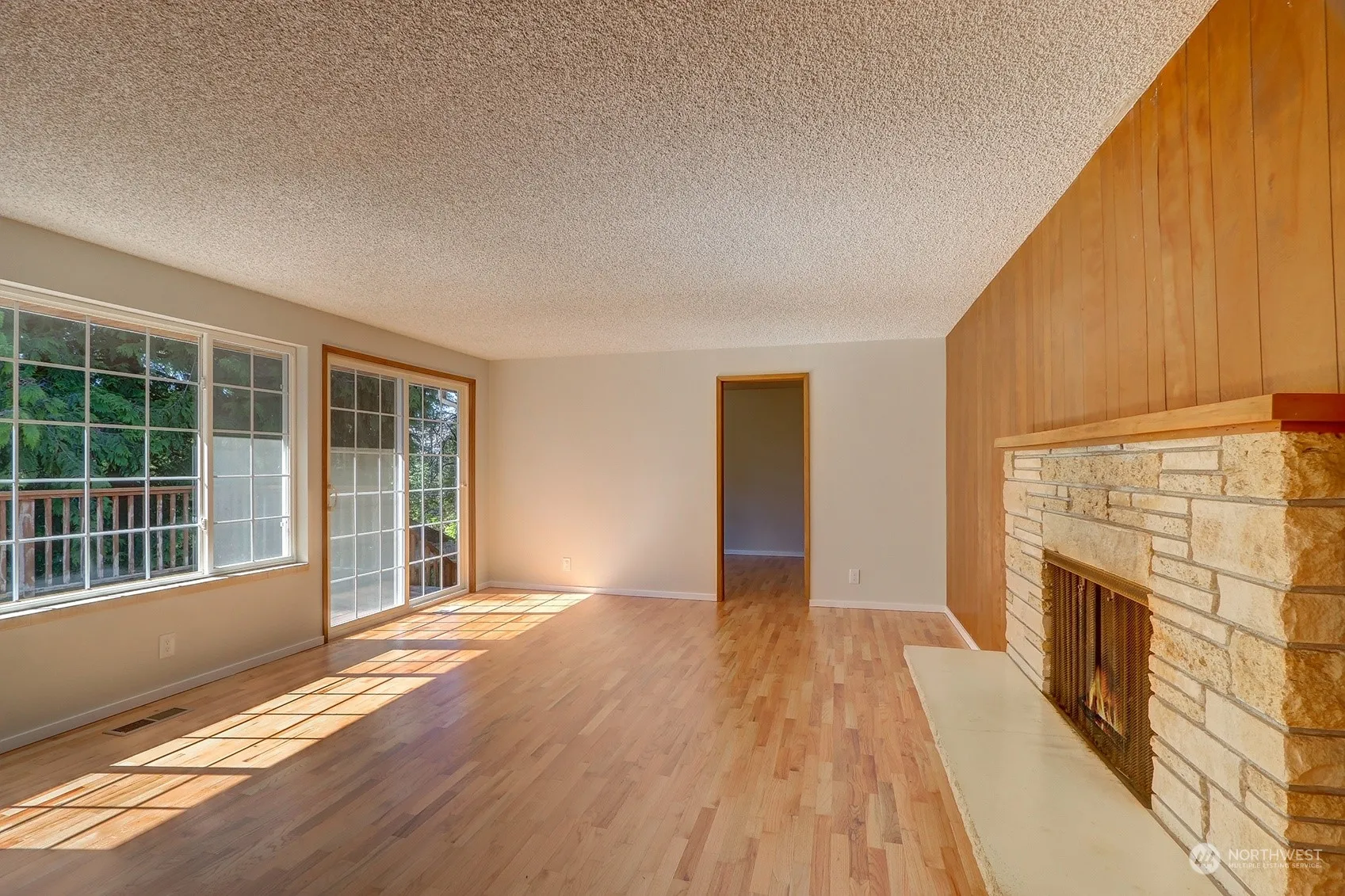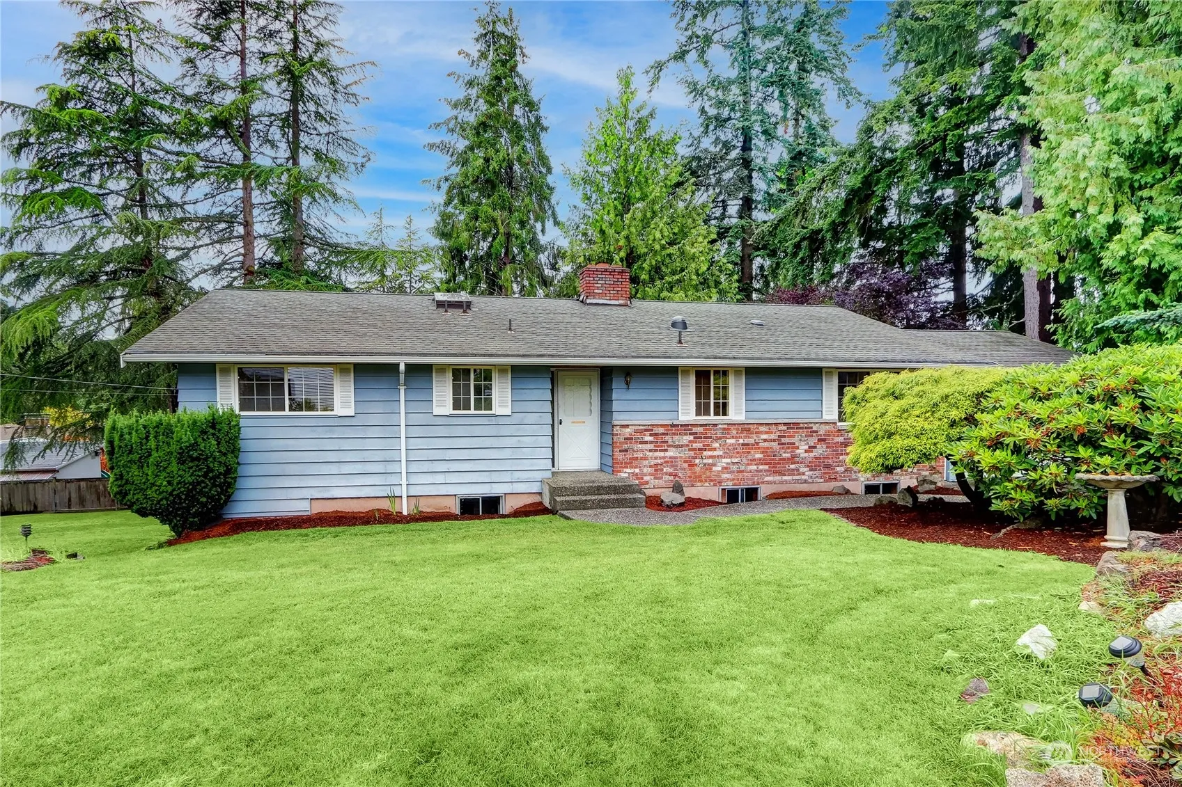 Spacious level entry home sitting on a large peaceful lot at the end of a private dead end street in the heart of Shoreline! Refinished hardwood floors, new interior paint, new carpet, and new LVP floors. Three bedrooms on the main level, including the primary with en-suite 3/4 bath. Main level kitchen, dining room, full hall bathroom, and a living room with wood burning fireplace and access to the large south and west facing deck. The spacious daylight basement features an additional bedroom, 3/4 bath, and rec room with 2nd fireplace and backyard access. Basement also includes a large and bright finished corner room perfect for an office or craft room. South facing side yard with plenty of room to garden and play! Over sized 2 car garage.