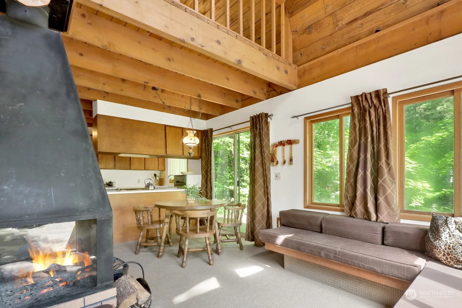 Fully furnished A frame cabin on large lot. Home has a greenbelt on 2 sides for extra privacy. Home was well crafted w/ wooden cabinets, wood wrapped windows, gambrel roof for extra space on second level. Deck wraps around front and side of home. Home can sleep 10 and is fully insulated. Huckleberry bushes in front yard. Great for a permanent home or could be used as a Airbnb, ski or summer home. No HOA. Two Sheds in back with a workbench and lots of storage. Dry wood ready for winter.
