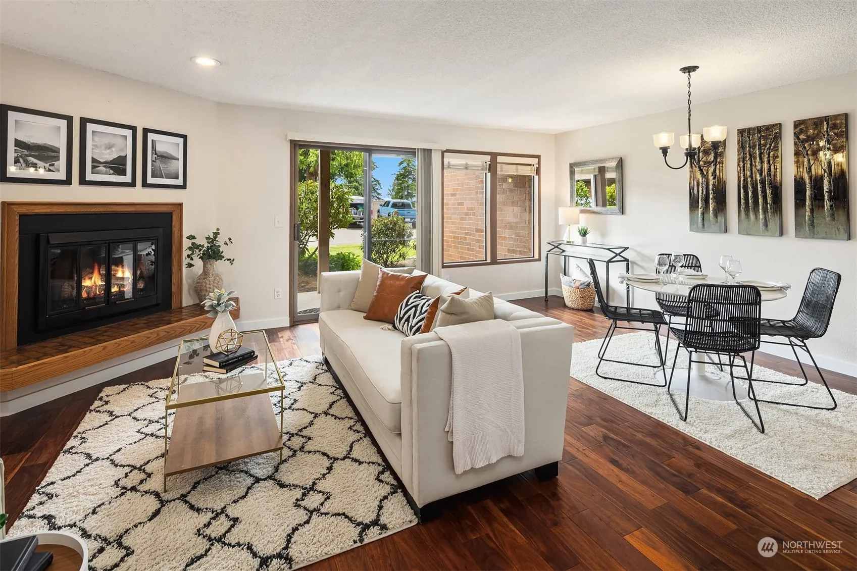 Charming ground-level 1-bedroom condo in View Point Condos. Well-maintained and updated with a convenient layout, kitchen flows into spacious living and dining areas with a cozy fireplace. Large covered patio ideal for summer relaxation. Community offers gated entry, walking trails, gazebos with sound views, clubhouse, pool, and RV parking. Immaculate and secure, this is a perfect place to call home. Closets abound in the unit, on the patio, and in front of assigned parking space for tons of storage capacity. Comfort and convenience in this desirable community!