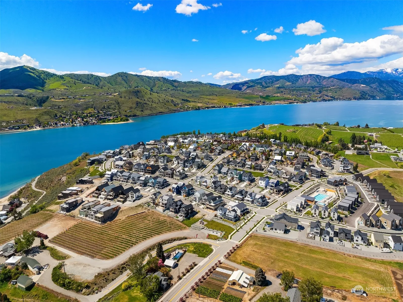 Primely positioned, exceptionally curated and notably designed. This legacy property is the marquee residence in the Lookout community of Lake Chelan. Boasting truly enviable curb appeal, where 3,331 square feet of architecturally defined living meets an oversized corner lot. Endless light, custom finishes and designer furnishings included. Chef’s kitchen featuring professional grade Wolf appliances. Embrace awe-inspiring views of surrounding landscape from every room, creating a picture-perfect backdrop. Ideally suited for personal enjoyment and a lucrative short-term rental. Enjoy notable community features, including: 2 pools, boat moorage, sports courts, and a private beach. Optimal short term rental opportunity abounds!
