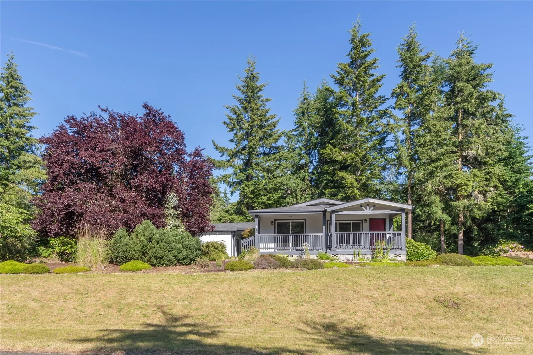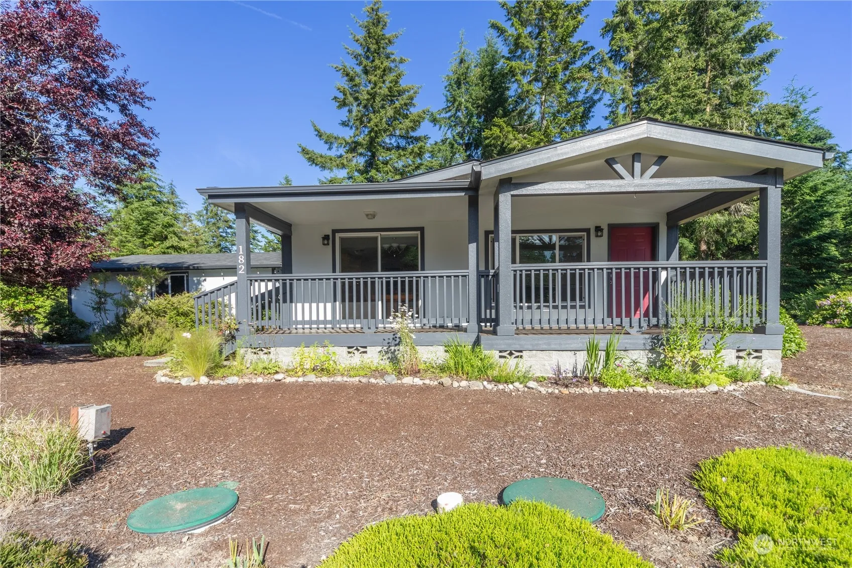 This lovingly cared for, and attractive one-level home will capture your heart! It offers an open floor plan with vaulted ceiling, a large kitchen with newer stainless-steel appliances, a walk-in pantry, and a large eating bar. The spacious dining room and living room are open to the kitchen. The primary suite is generous in size with a luxurious bath complete with soaking tub and shower. A large covered front porch/deck greets your guests with easy-care Trex decking. The many upgrades including window coverings, gutters, and water heater. The patio fencing will be painted as soon as weather permits, prior to close. Lot rent includes septic. This manufactured home community is quiet, well-maintained and near most Port Hadlock amenities.