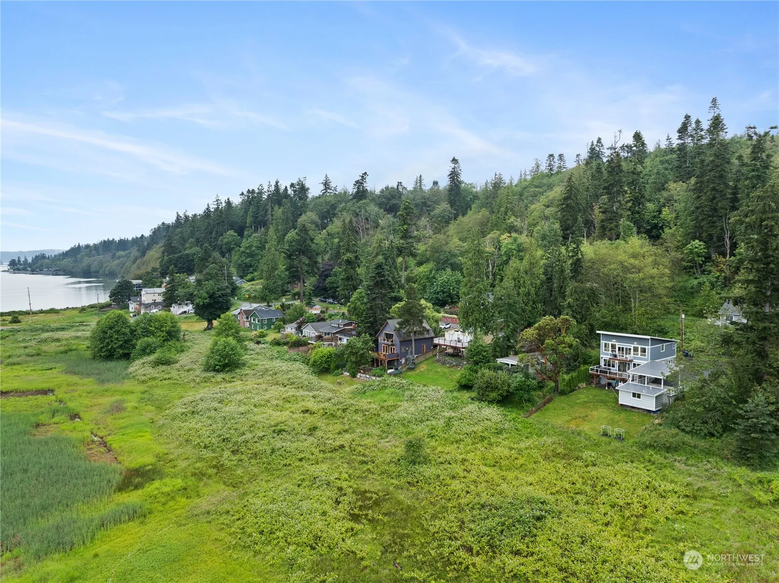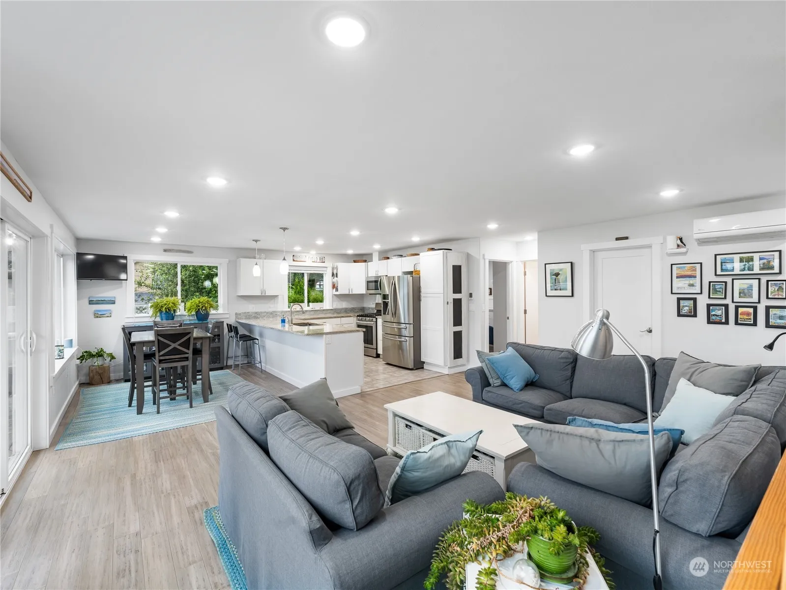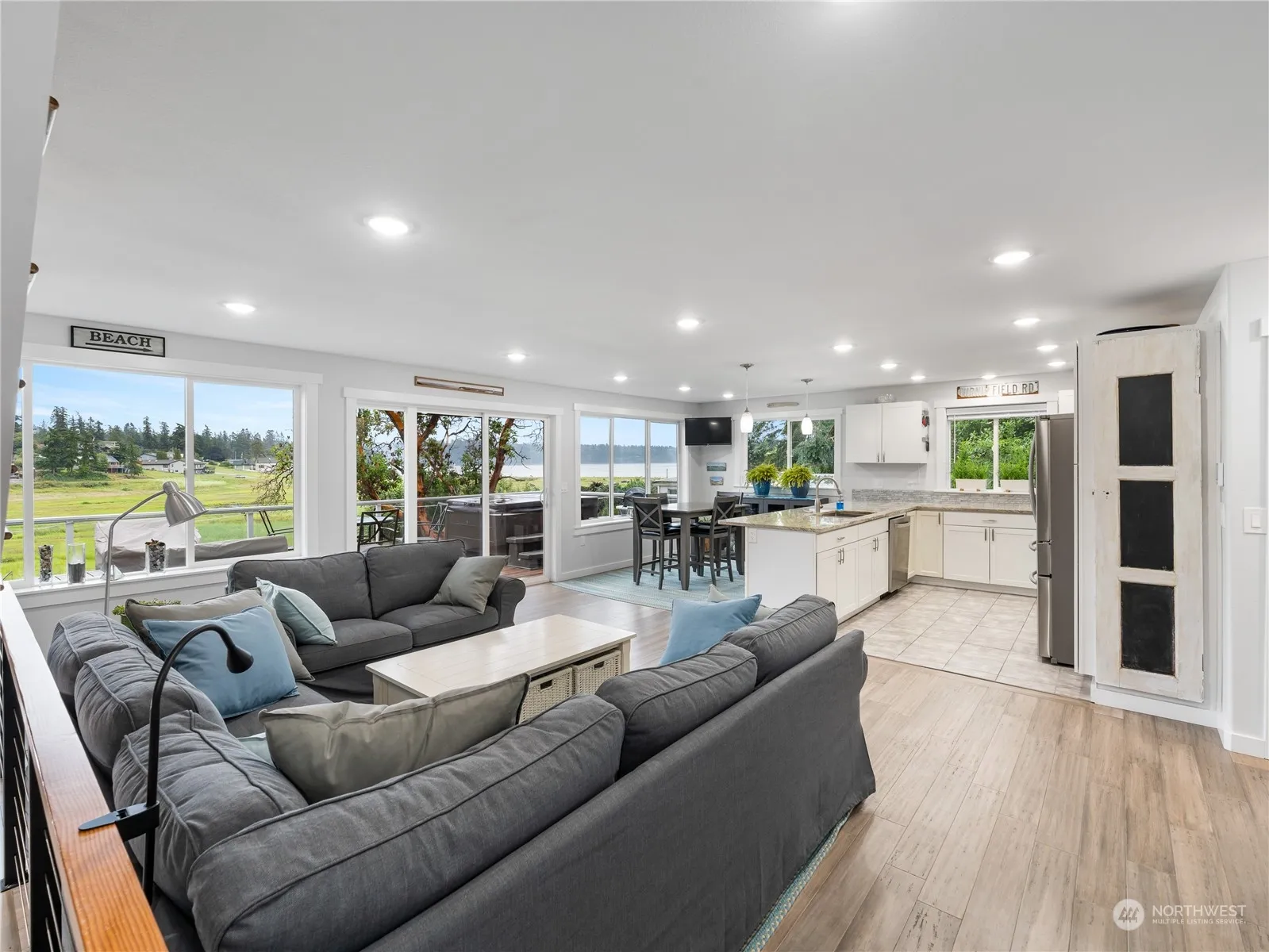 Discover a picturesque retreat in Anacortes overlooking Similk Bay with stunning golf course, mountain, and wetland views. Bamboo flooring and heated tile create warmth and comfort throughout. The primary suite occupies the entire upper floor, featuring a vaulted ceiling, private deck, and a cozy fireplace. French doors lead to the ensuite bath, boasting a soaking tub, double vanity, and an enormous walk-in closet. The main floor offers open concept living, kitchen, & dining spaces. Stay comfortable year-round with a mini split ductless system, & store your outdoor gear in the 10×18 shed. Quick stroll to the beach plus close to state parks, this home embodies both luxury and convenience in an idyllic coastal setting.