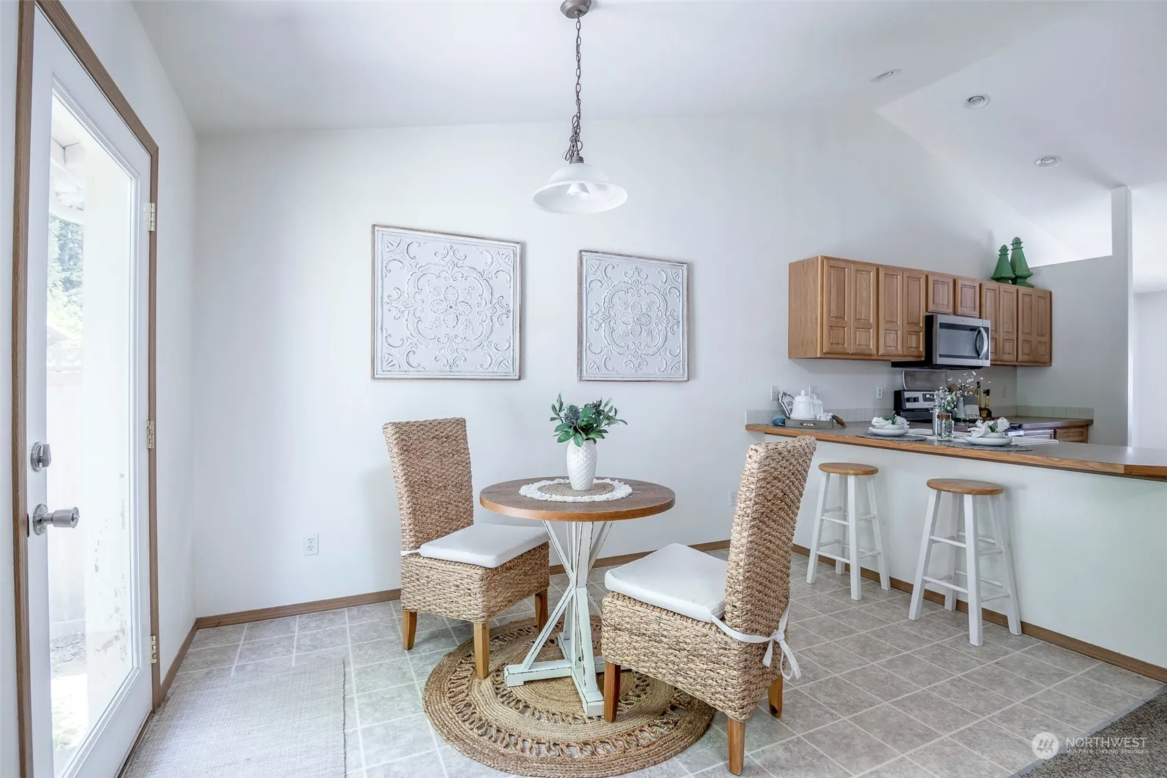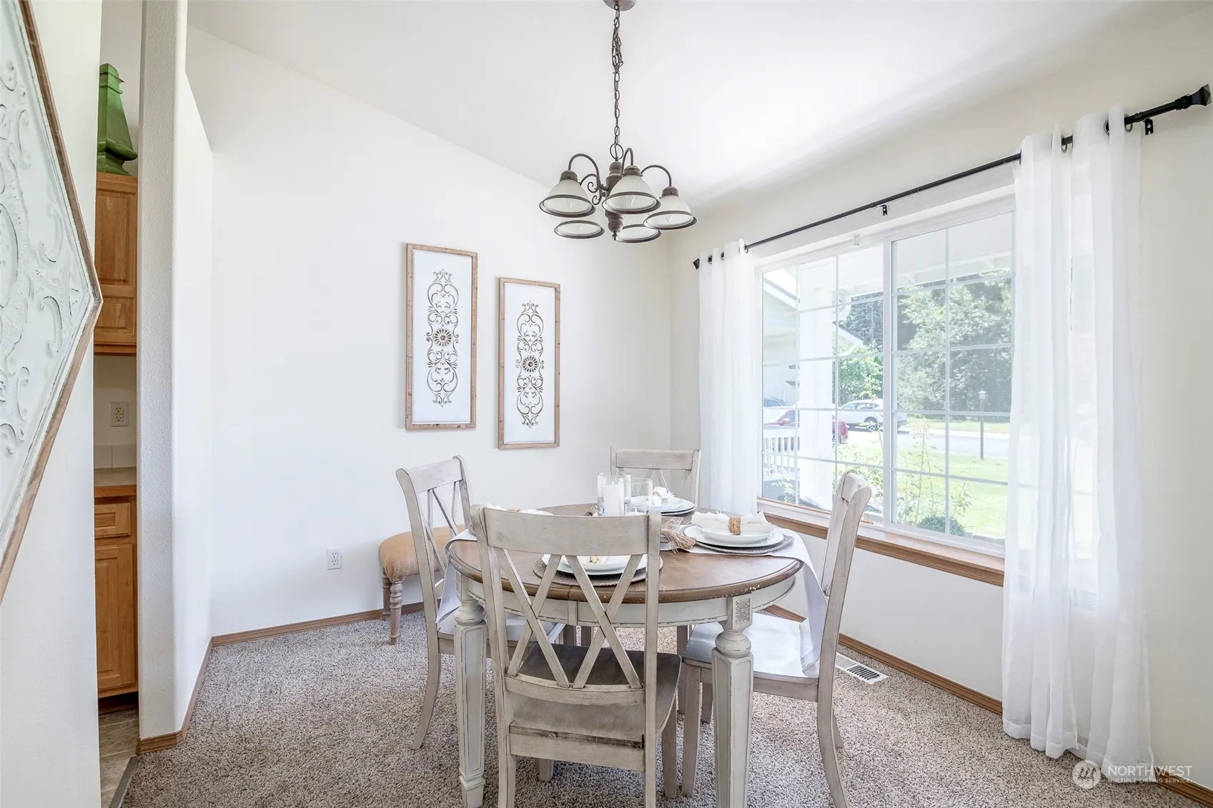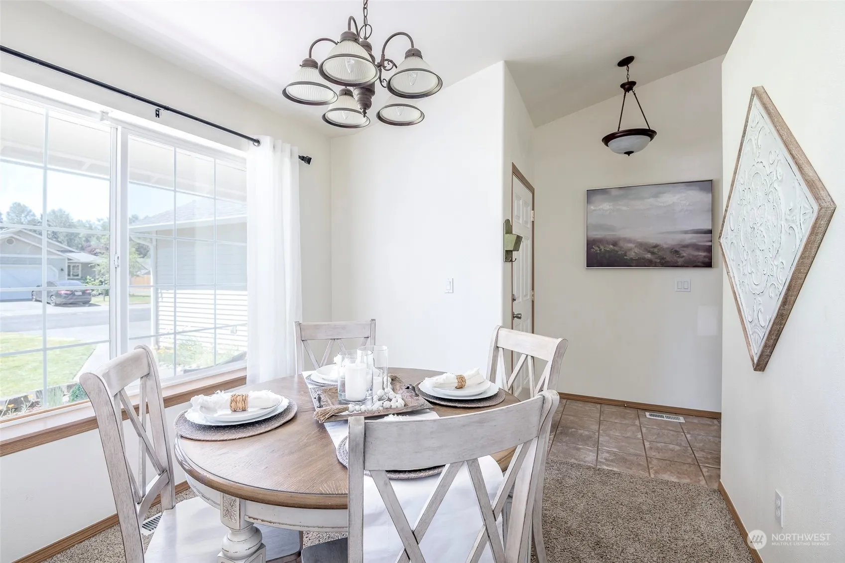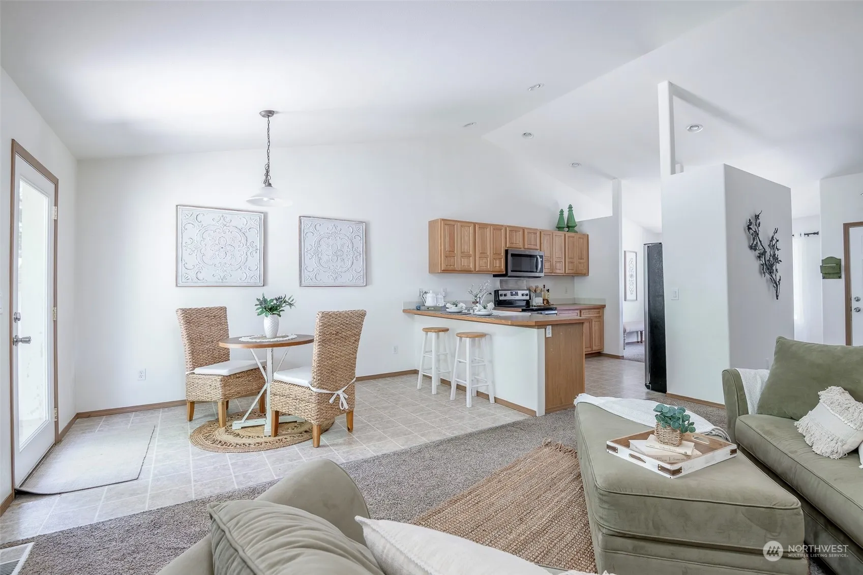 This inviting rambler is bursting with light and warmth, thanks to its vaulted ceilings and open floor plan. Move-in ready and is perfect for anyone looking for a spacious and well-maintained home. The heart of the home is the large kitchen with an eating bar and eating nook, perfect for casual meals and morning coffee. For more formal gatherings, there is a separate dining room that would also work as a fantastic home office! The 5 piece master bath is a luxurious feature, with double sinks, a soaking tub, and a stand-alone shower. The large 2 car garage provides plenty of room for storage, and the private fenced back yard with a patio is perfect for outdoor entertaining. New roof & gutters installed 2021. Newer furnace and appliances.