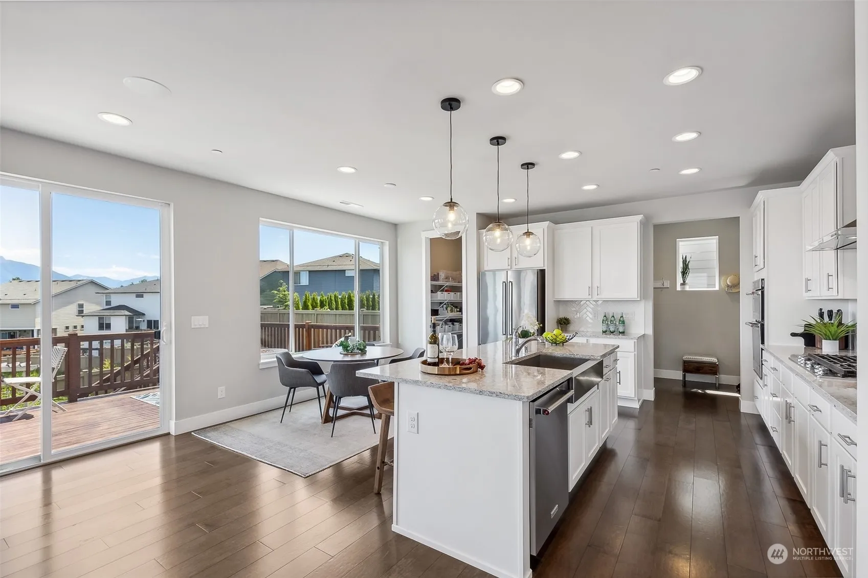 Exquisite home with breathtaking mountain views throughout in coveted Eagle Pointe. Chef’s dream kitchen features quartz countertops, an expansive island w/seating & a lg walk in pantry. Great rm is open to the dining rm & kitchen, an ideal layout for entertaining. Main floor also finds an office, 1/2 bath & mudroom. Primary suite offers a luxurious bath, walk in closet & Mt Si views. 2 add’l BRs, full bath & laundry rm complete the upper level. Lower level finds a huge bonus rm, BR & bath w/shower. Fenced yd features a patio, raised beds & lg deck for BBQ’s & enjoying the views! Don’t miss the community park & miles of trails. All the conveniences of Snoqualmie Ridge, yet less than 30 miles to Seattle or skiing. It’s the perfect location!