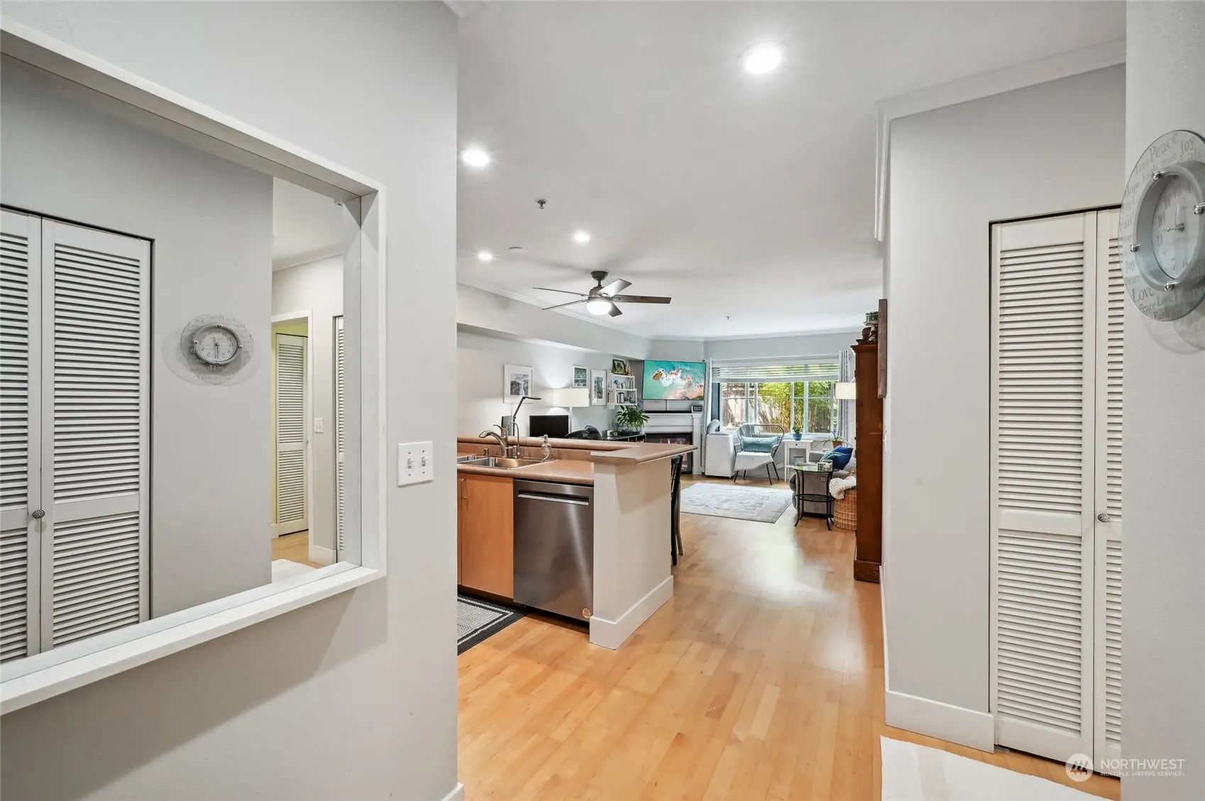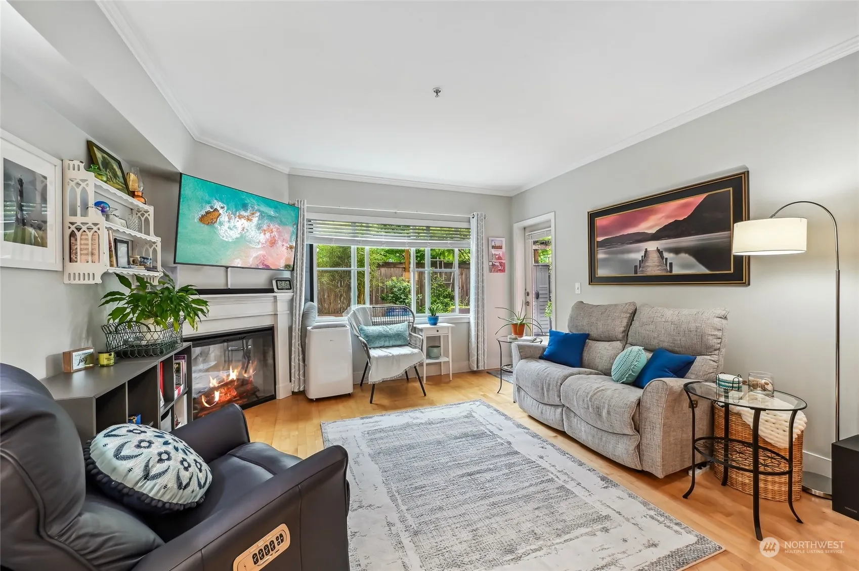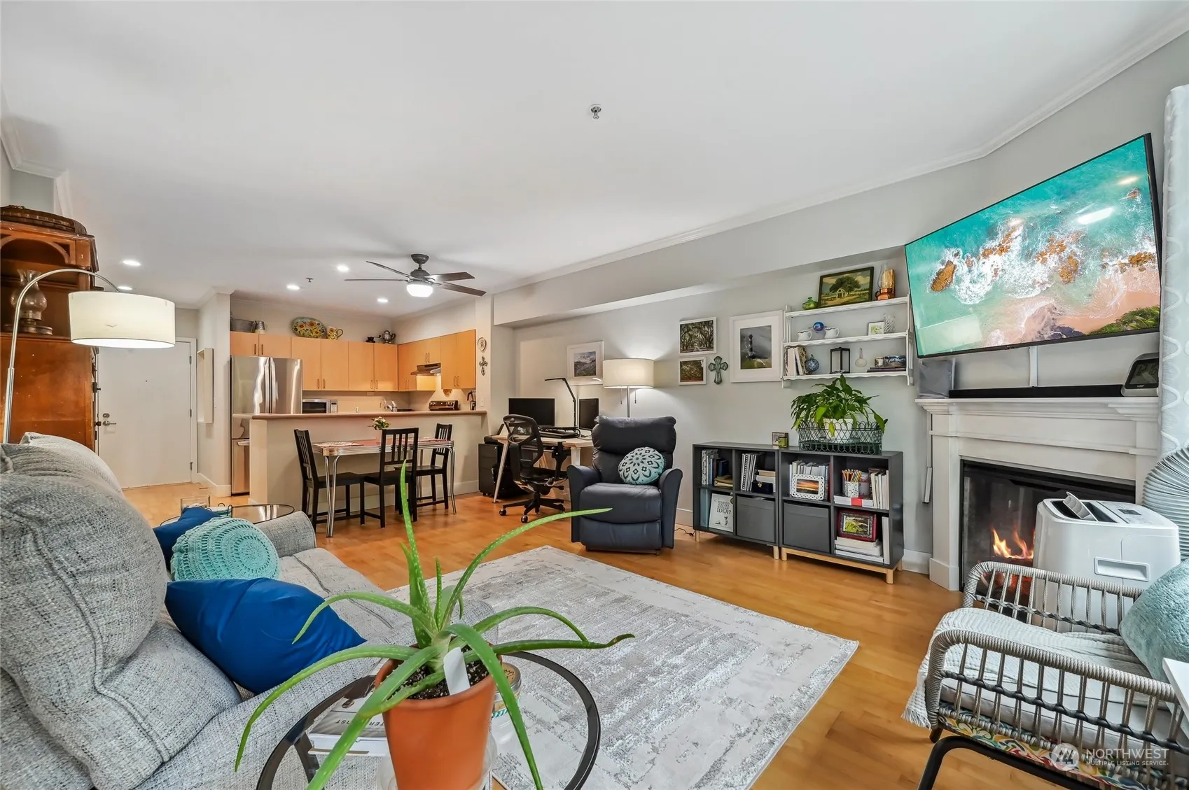 Welcome home to your ideally located condominium! This one bedroom, one bath condo has a spacious open floor plan. Featuring a centrally located kitchen w/ ample cabinetry & all new appliances. Large living room w/ new cozy electric fireplace, plenty of natural light & a private patio. Laundry area w/ full size W/D. Full bath right across the hall from bedroom. New interior paint throughout. An attractive building w/ a secure entrance & gated parking garage w/ your assigned spot. Elevator from lower garage to condo units, so no stairs! Complex is pet friendly, has a fitness room & your private storage unit in the corridor. Great access to nearby parks, shopping centers, a cinema, restaurants & only a few mins from I-5.