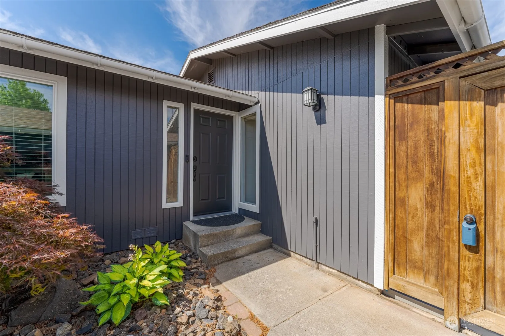 Wonderful location, tastefully updated, well cared for 3 bedroom 1.75 bath home, lots of natural light and vaulted ceiling in the living room with lots of natural light. Detached 2 car garage that has heating/cooling and finished. Exterior has just been painted in June. Open concept kitchen to the dining room with a sliding glass door to the large patio area great for entertaining, fenced backyard with UGS and courtyard feel. Extra parking on the side for RV. Primary suite with a 3/4 bathroom, walk in closet and glass door to the patio. This is a lovely home on a great cul da sac street.