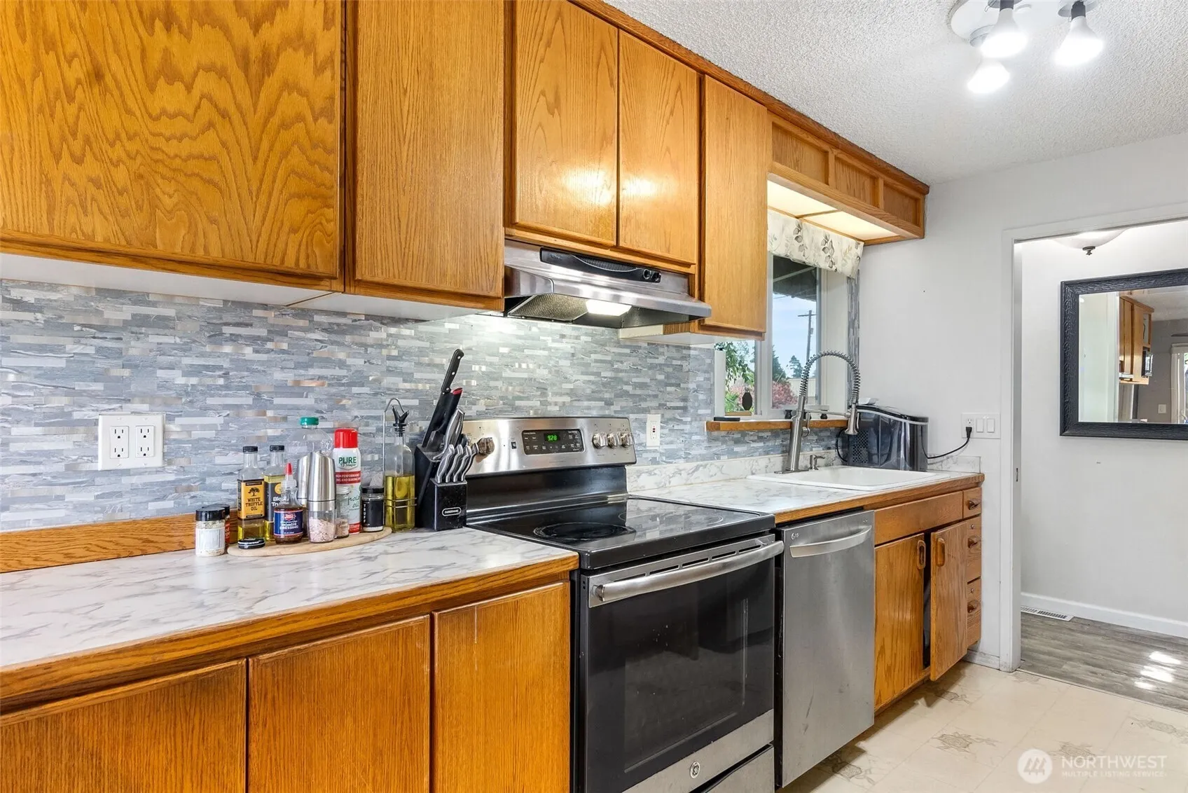 Spacious home in Desirable location Close to Freeway, Restaurants and Shopping. Home offers tons of features including a private fenced yard and access off two streets. Layout is split with a large master suite with exterior entrance that could also be used as an extra bonus living room. Mature Landscaping that has been well maintained with a covered back deck help bring the exterior together.