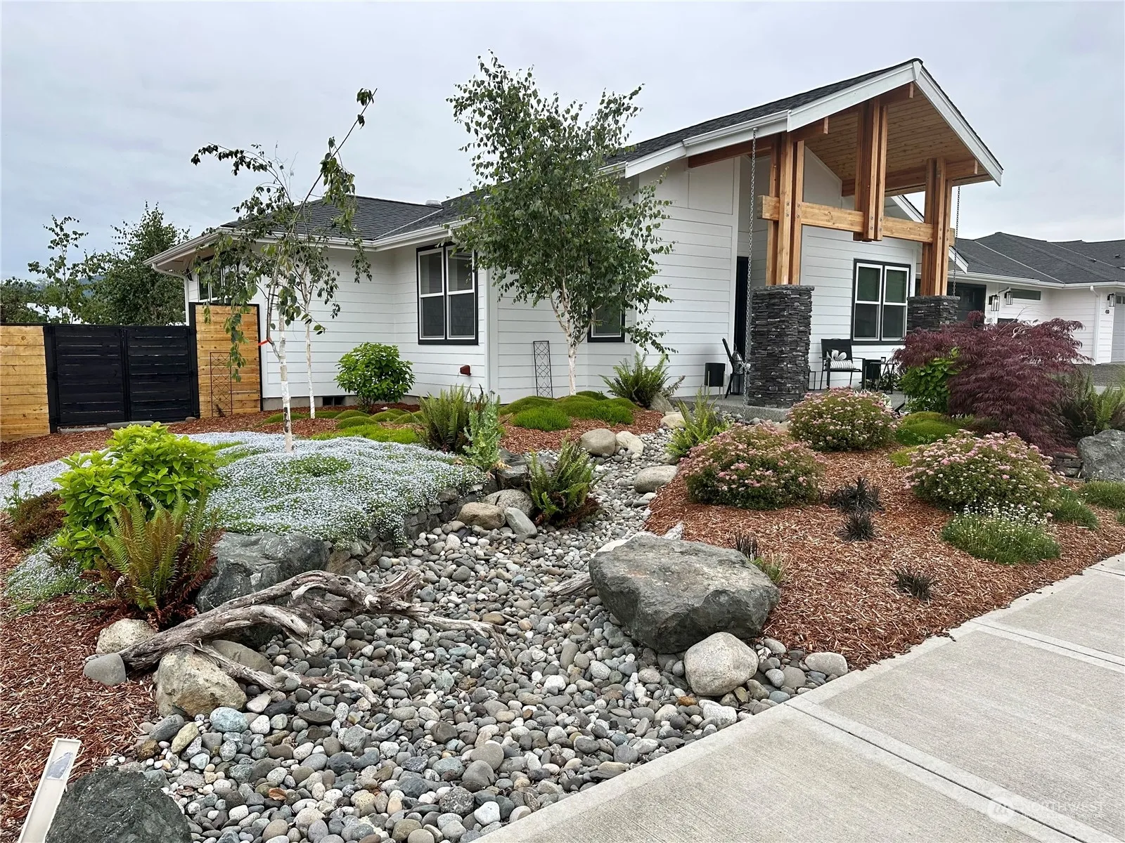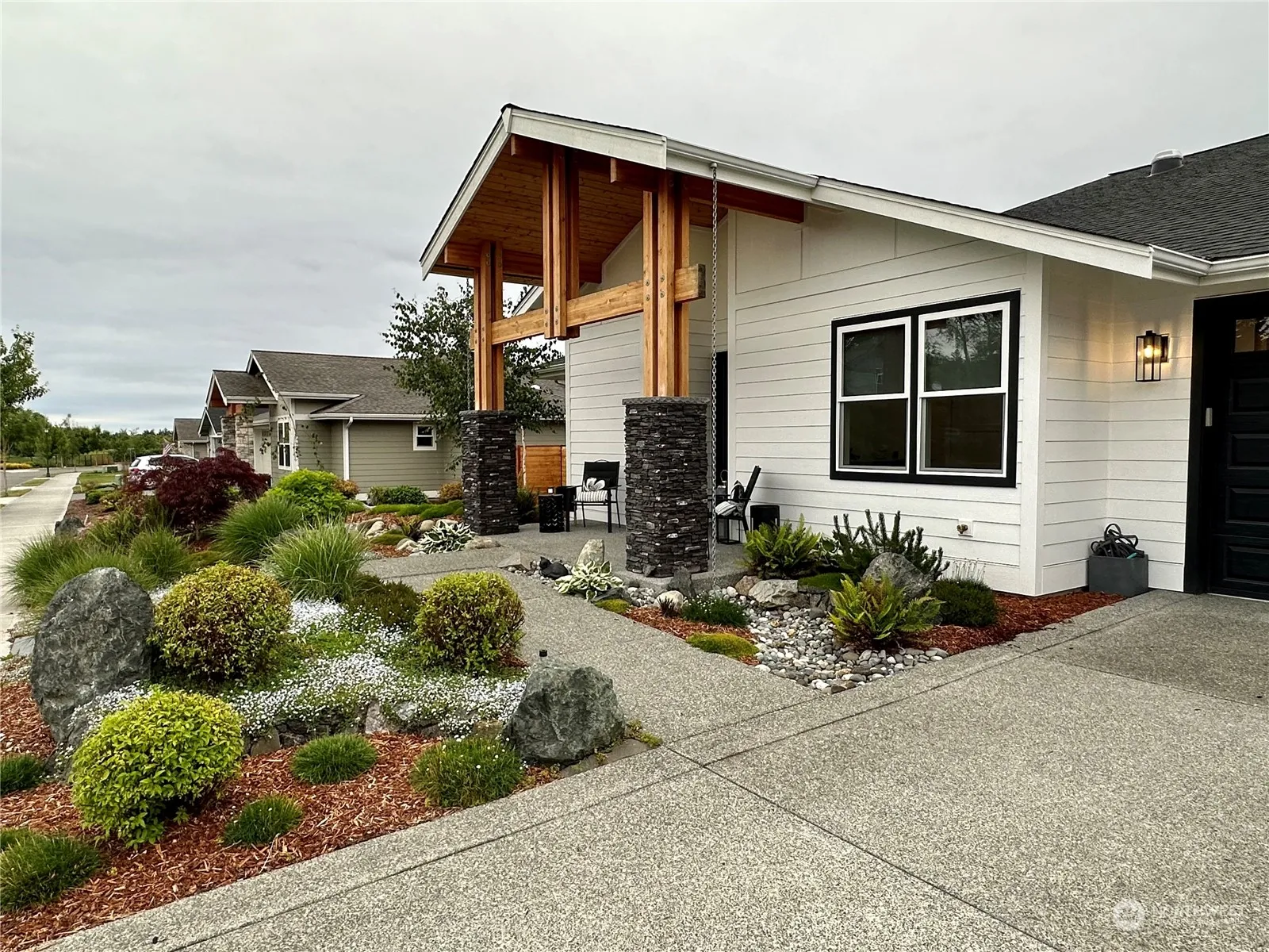 Discover your sanctuary in this meticulously designed ranch style home by Anderson Homes in Willow Creek Manor. Tall ceilings & abundant natural light grace every room, highlighting the open floorplan & gleaming hardwoods. Entertain effortlessly with a slider to the covered stone/pine outdoor area w/a gas fireplace, offering mountain & winter water views. The gourmet chef’s kitchen features quartz counters, custom soft close cabinetry, & a 10 ft. island. The primary bedroom boasts a huge walk-in closet, private ensuite with heated floors, a large soaking tub, & tiled double shower. An oversized garage with shop area & storage shed cater to all your hobbies & needs. Enjoy nearby amenities like the Discovery Trail, p ball court, & dog park.
