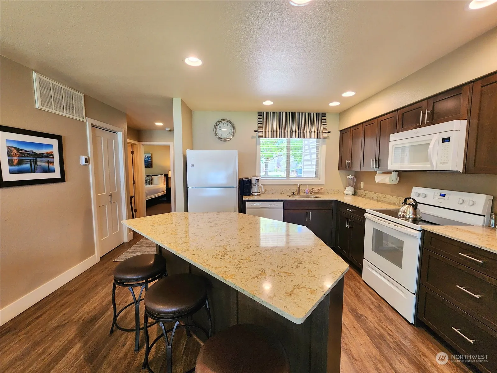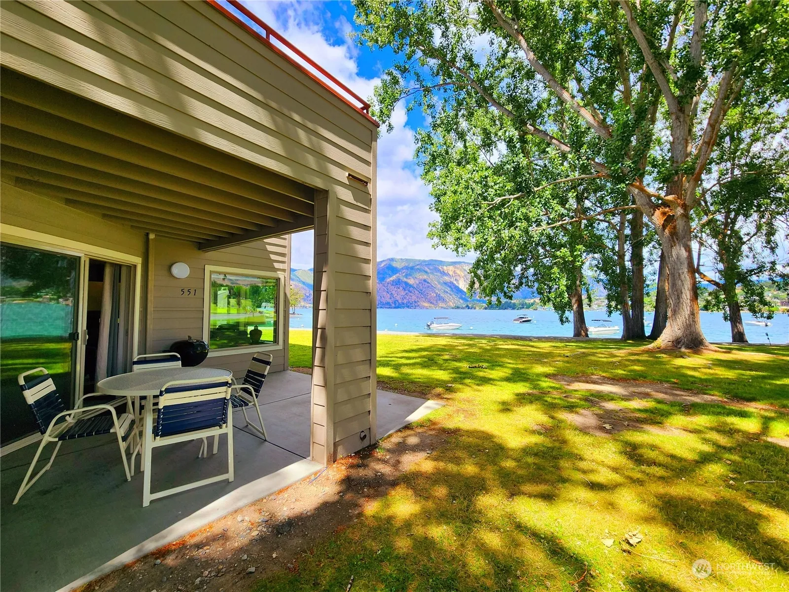 This GROUND floor CORNER 2 bed 2 bath luxury waterfront suite very rarely comes up for sale. Buy NOW & enjoy Sept 26-Oct 3 in 2024. Upcoming summer weeks: June 26-July 3 in 2025; July 23-30 in 2026 & August 19-26 in 2027. Beautiful lake views with trees close by for afternoon shade. HOA Fees $732 per quarter includes 3 rotating weeks every year allowing you the most affordable way to experience all seasons at Wapato Point Resort. Waterfront, boat moorage, lawn and walking path are directly in front of the condo. Use your weeks, rent for income or trade your weeks thru RCI or Interval Internat’l & visit other places. Close to watercraft rentals, children’s activity center, sandy beach & just beyond are pickleball courts, indoor pool & more.