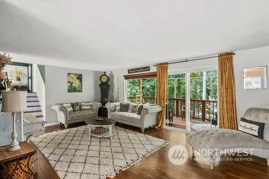 Beautiful tri-level home with three bedrooms. Rec room/bonus room on lower level. There is space for everyone. Newer vinyl windows, newer roof. All appliances stay. This home has so many beautiful updates to make a house a home. The large backyard is terraced great for entertaining and space to spread out. Upper terrace is turf. Garden area. Partial view of Carp Lake from upper covered deck. Dog Kennel. Shed stays. This home is a must see.