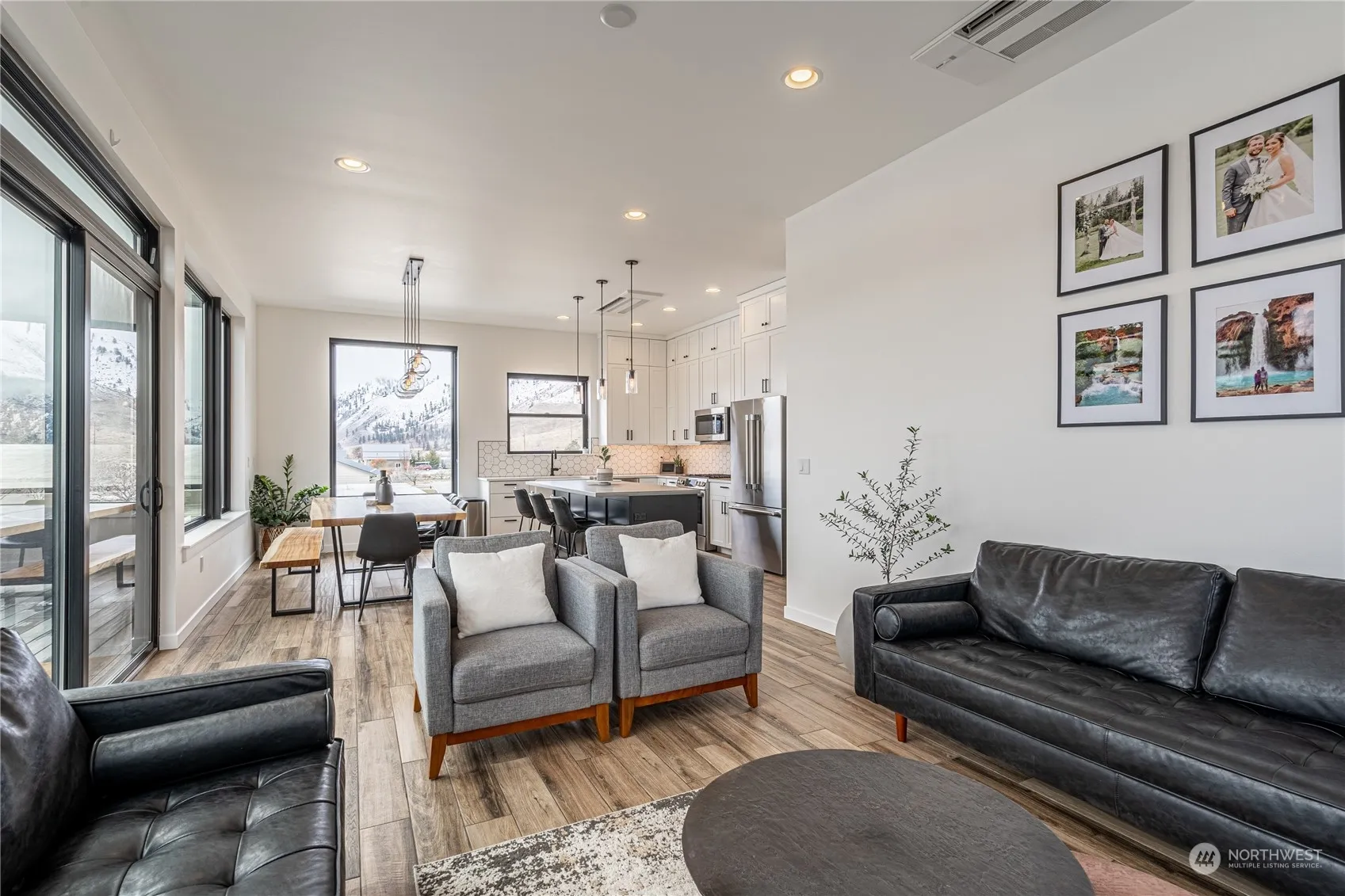 Modern waterfront home on the Columbia River. Enjoy the gorgeous views of the river and surrounding mountain landscape. Expansive 3 bay, 1,700 sq ft conditioned garage with radiant heated floors to fit all your toys. 2 bed 3 bath with 10 ft ceilings, tile floors throughout and 34 ft x 15 ft deck. Meticulously maintained landscaping and heated pool complete with automatic pool cover and patio area. Rock staircase for easy access to the river. Permitted as a DADU with 5 bedroom septic system and 600 amp electrical service already installed for future expansion or separate home.