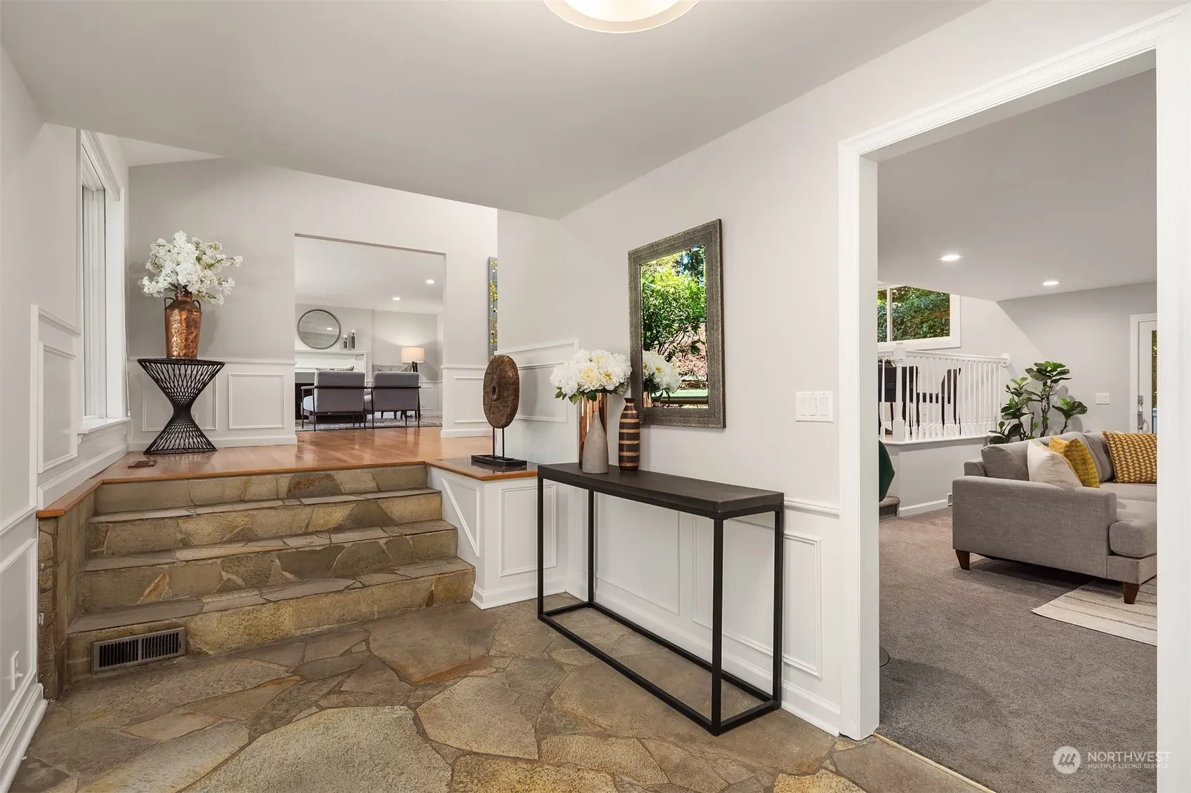 Ideally situated on a flat cul-de-sac in a coveted mid-Island neighborhood, this stunning, remodeled mid-century traditional has it all. Light & bright interiors are generous in scale with updated kitchen & bathrooms, 2 gas fireplaces, gorgeous hardwood floors, lovely period details & all the right spaces for today’s lifestyle…family room & office on the main floor plus 4 beds & 2 baths on the upper level. Every surface has been upgraded w/high-end modern finishes, fresh paint, all new systems and AC. Enjoy seamless indoor-outdoor living with a 970 sq ft wraparound deck & level yard. Oversized lot w/mature landscaping overlooks a lush greenbelt offering privacy & tranquility, yet is minutes to schools, parks, trails, shops & restaurants.