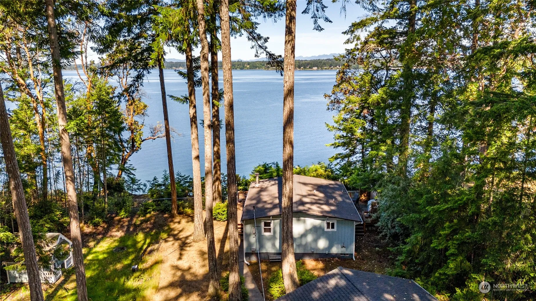Highbank Waterfront Cabin with Spectacular views of Case Inlet and The Olympic Range, with 100+ feet of waterfront on Puget Sound. Start your day with a morning coffee or unwind with an evening cocktail on the deck, as you soak in stunning sunsets. This cozy retreat features 2 bedrooms, 1 bathroom, and a garage with one side converted into a guest room or studio.Store your RV, lots of space. Situated on over an acre in a semi-secluded neighborhood, Just 25 minutes from the Narrows Bridge and a few miles from Vaughn. Cute, quaint, and charming, this cabin offers a perfect escape.