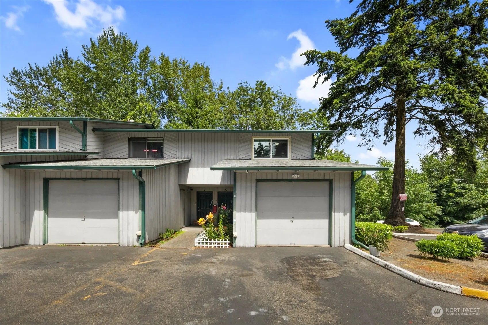 Welcome home to this desirable 2-story end unit that features over $30,000 in improvements! Enjoy the extended living room w/office nook, updated kitchen w/SS appliances, granite countertops, custom blinds, doors, and beautifully remodeled bathrooms. Lush backyard view with meticulously kept garden at entrance. Great location for commuting with easy access to I5, 405, airport, transit, and light rail. Over sized garage with cabinetry and work table. Plus plenty of guest parking! Great investment opportunity as well. Don’t miss out!