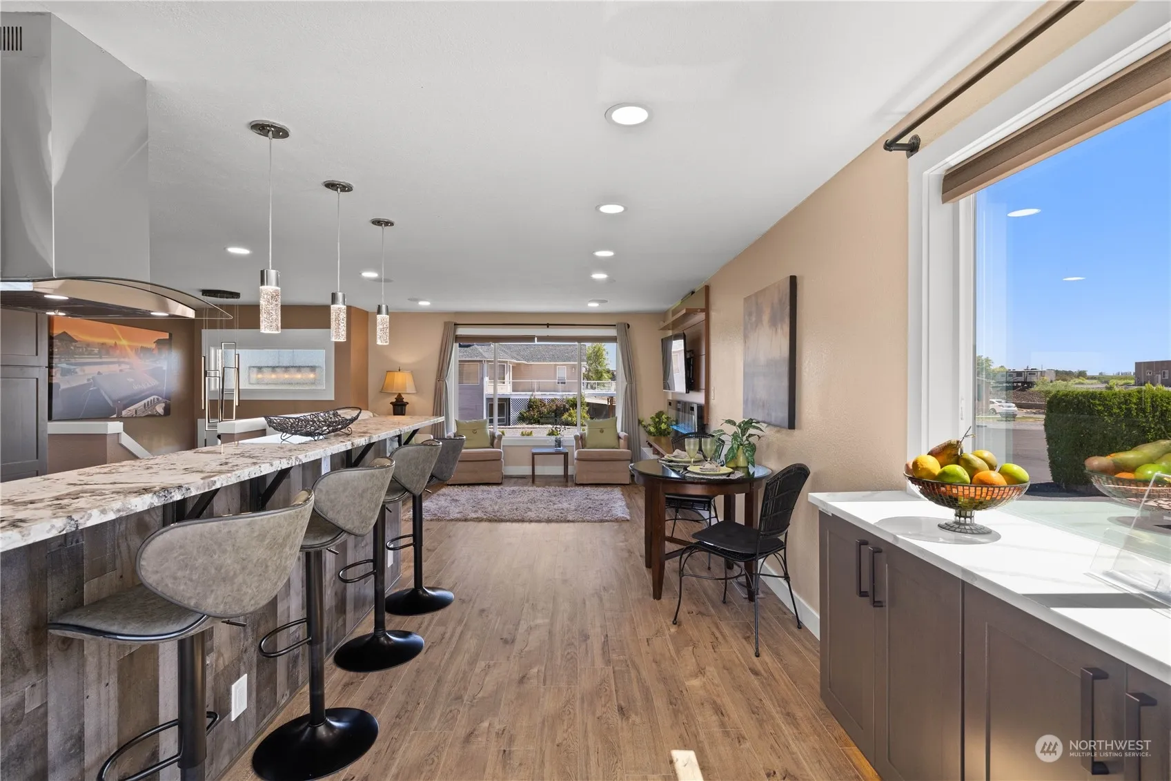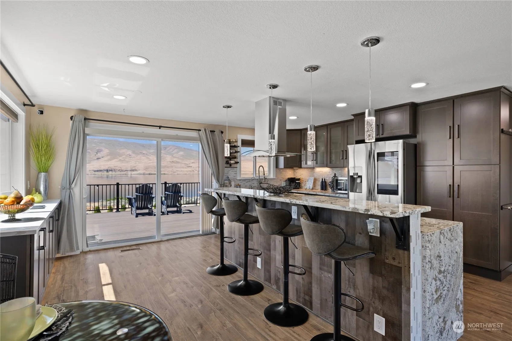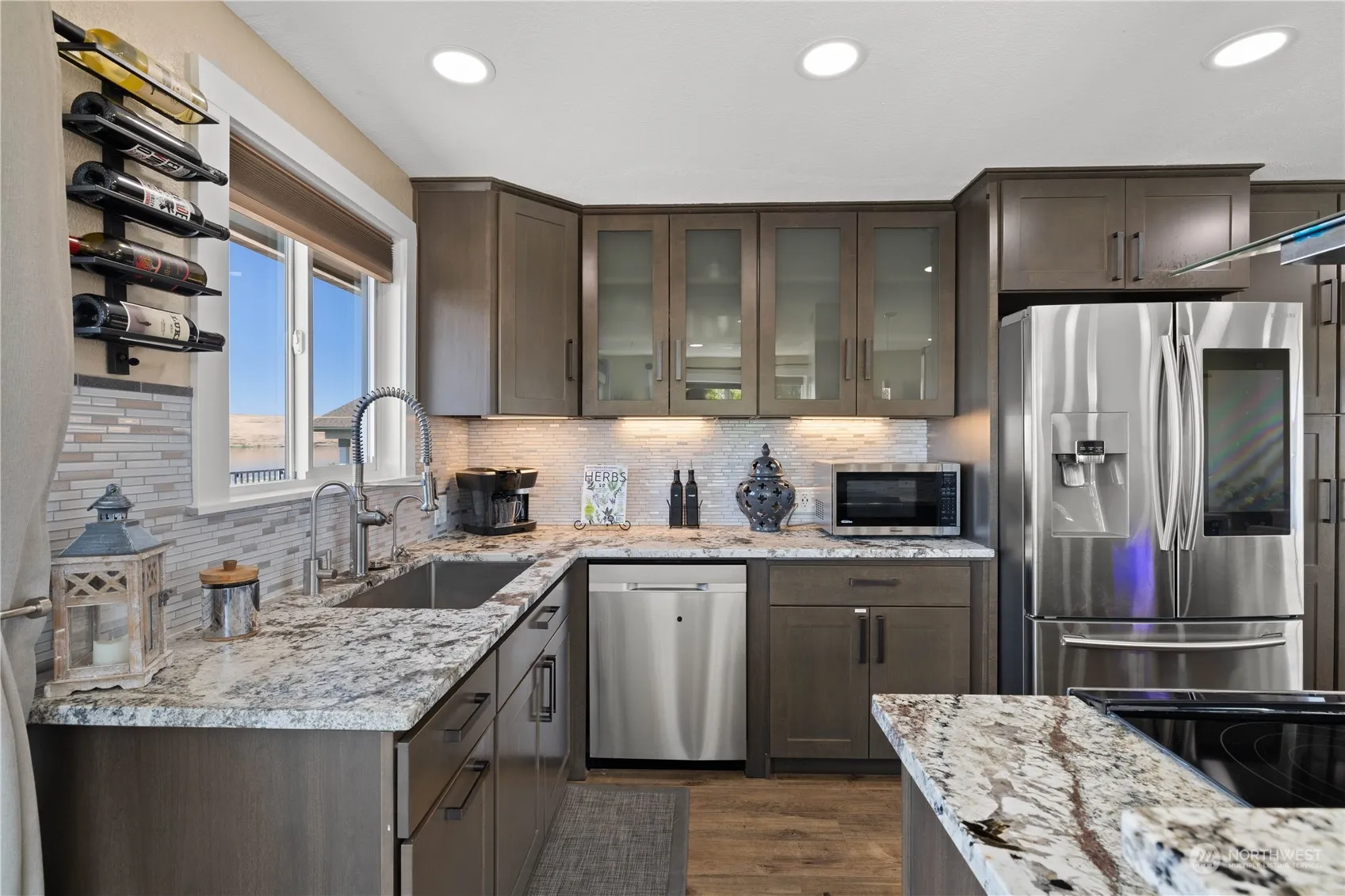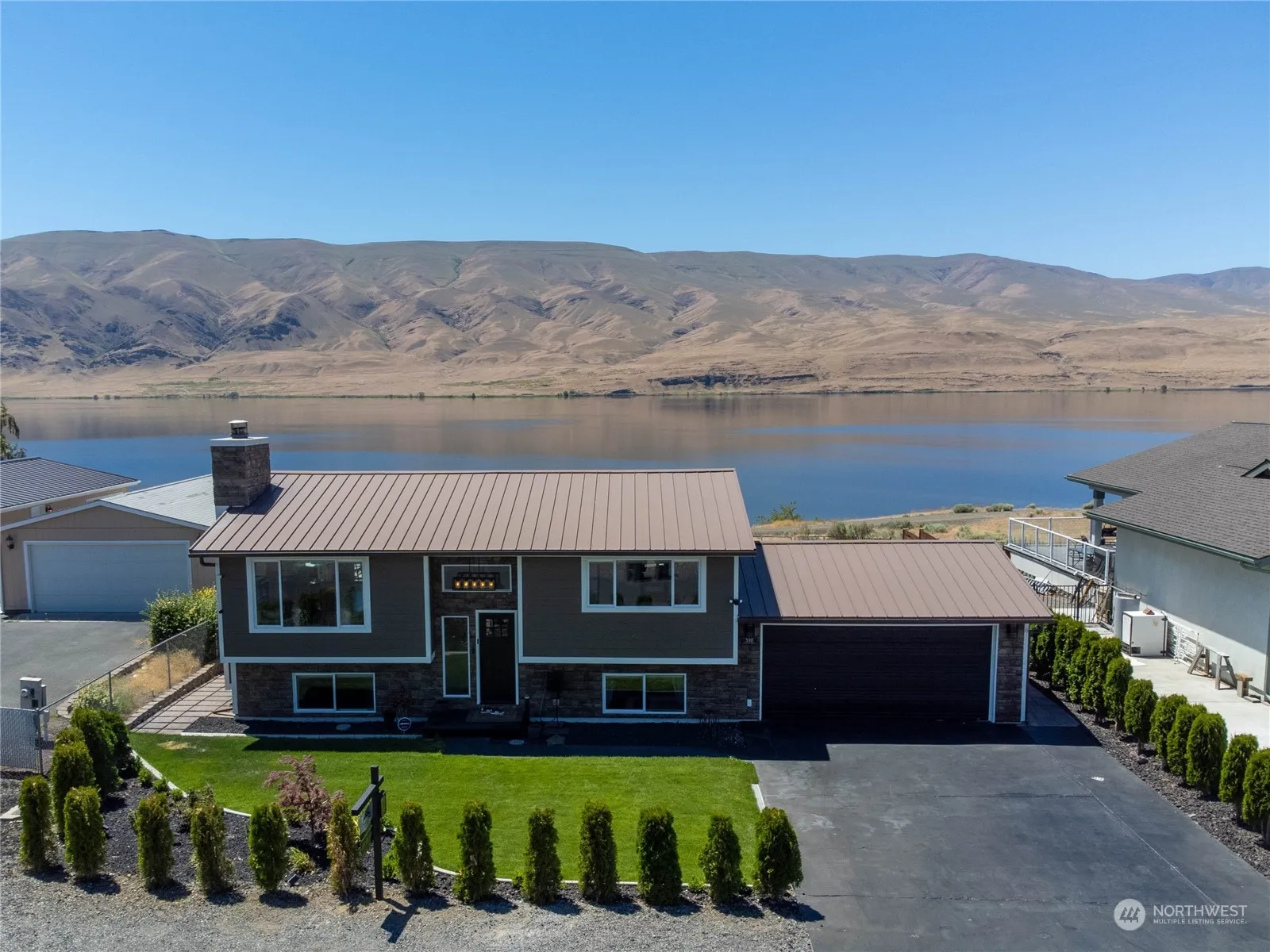 Stunning Waterfront view home. This 4-bedroom 2-bathroom home features Recent upgrades including new siding, new windows, new exterior paint. fully updated kitchen, new appliances, custom cabinets, granite countertops, high-end-appliances. Upstairs features an amazing kitchen, living room and two full bedrooms and a bathroom. Downstairs offers a second family room, two full bedrooms and a bathroom with 2 full bedrooms, perfect for VRBO income. Located on a quite dead-end street with access to the waterfront beach and trails. Enjoy the perks of the Desert Aire community with amenities like a swimming pool, tennis courts, trails, parks, playgrounds, an 18-hole golf course, a waterfront park with a boat launch, and a small airpark.