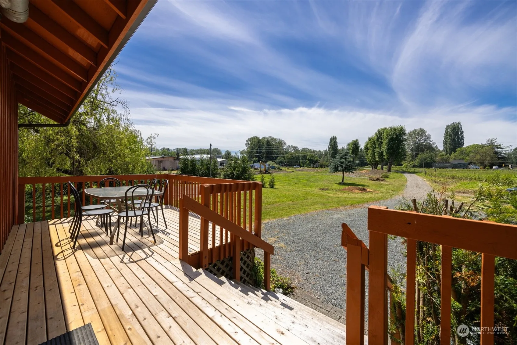 Country comfort with city convenience. Beautiful home with character, walking distance to a grocery store, restaurant, bank, coffee shop, and fishing, spacious property is just 10 miles from Bellingham. The home is uniquely designed with gorgeous timber ceilings, 3 spacious decks, and a remodeled kitchen with new appliances. The Master bedroom boasts a private deck and sizeable bathroom. Two living rooms provide ample room for entertaining guests and/or relaxing by the wood burning stove, and the .61 acre lot lives larger with a private feel. Excellent soil for gardening with fruits including cherries, apples, pears, Asian pears, grapes, and plumbs. Foundation walls elevate home above flood line; home has always remained dry.