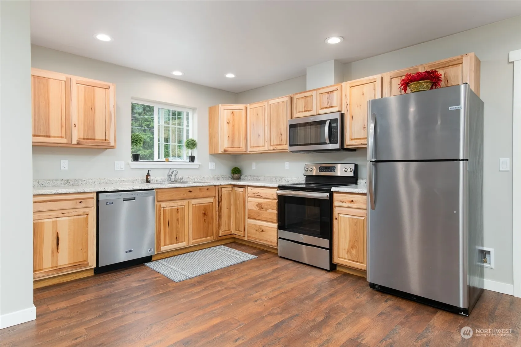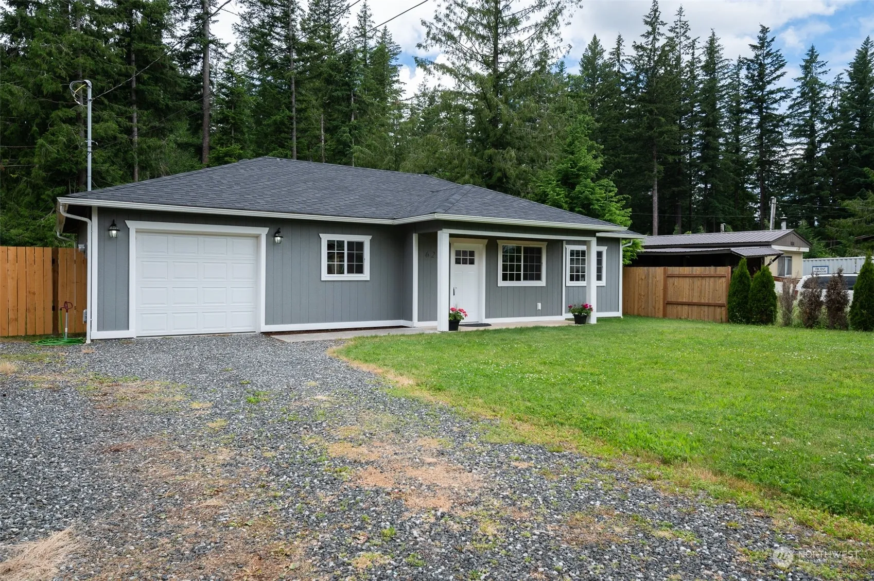 Like new and move in ready. This 2020 built 3 bed 1.75 bath rambler is located in a nice neighborhood with other newer homes. Boasting fantastic mountain views, sizable spacious lot, covered front porch, oversized garage, and a gated & fully fenced backyard w/a backdrop of mature trees. Inside, an open concept floor plan with engineered plank flooring, upgraded kitchen cabinets, stainless appliances, recessed lighting, & a ductless heating & cooling system for those hot summer days. The spacious bathrooms have beautiful ceramic tile flooring & solid surface countertops. The owners suite has its own full bath, walk-in closet, and a large sliding glass door that leads you to your outdoor patio & spacious backyard. Come and take a look today!