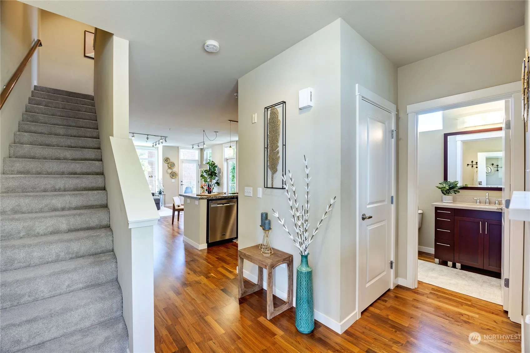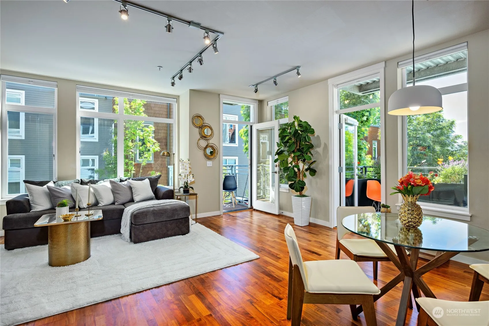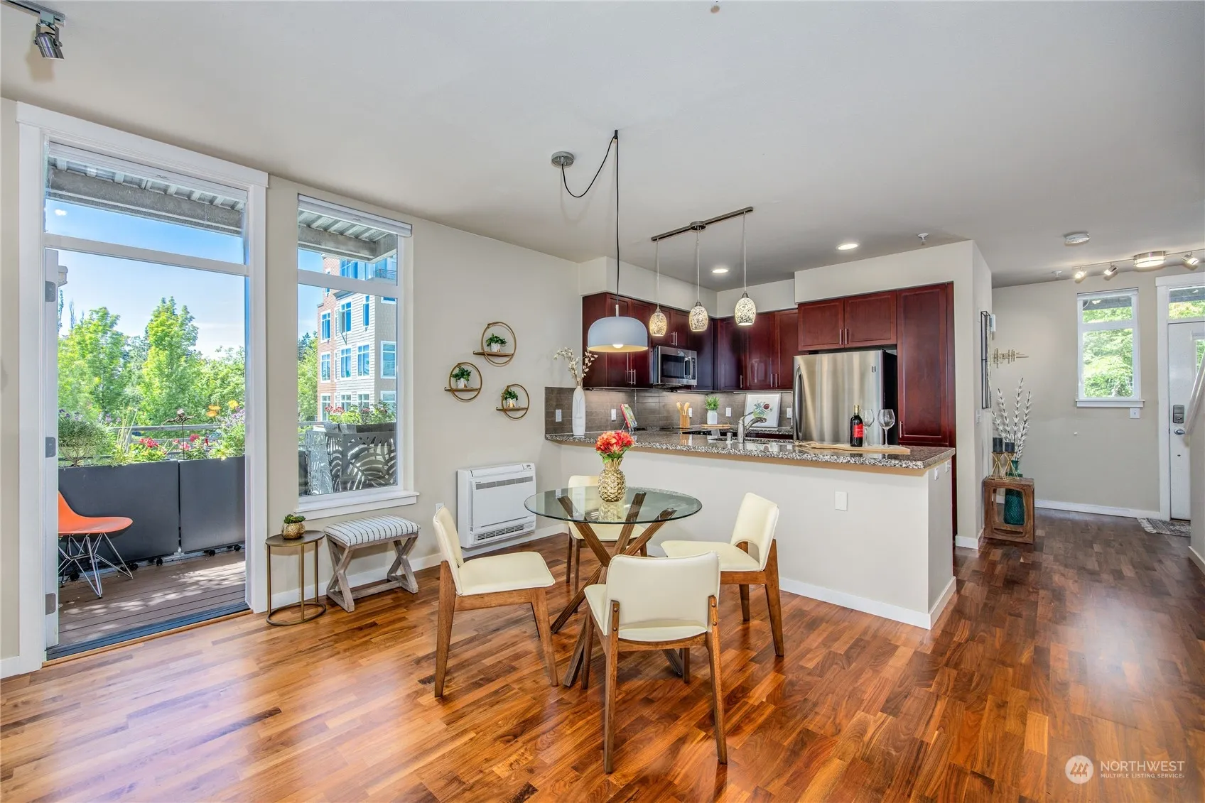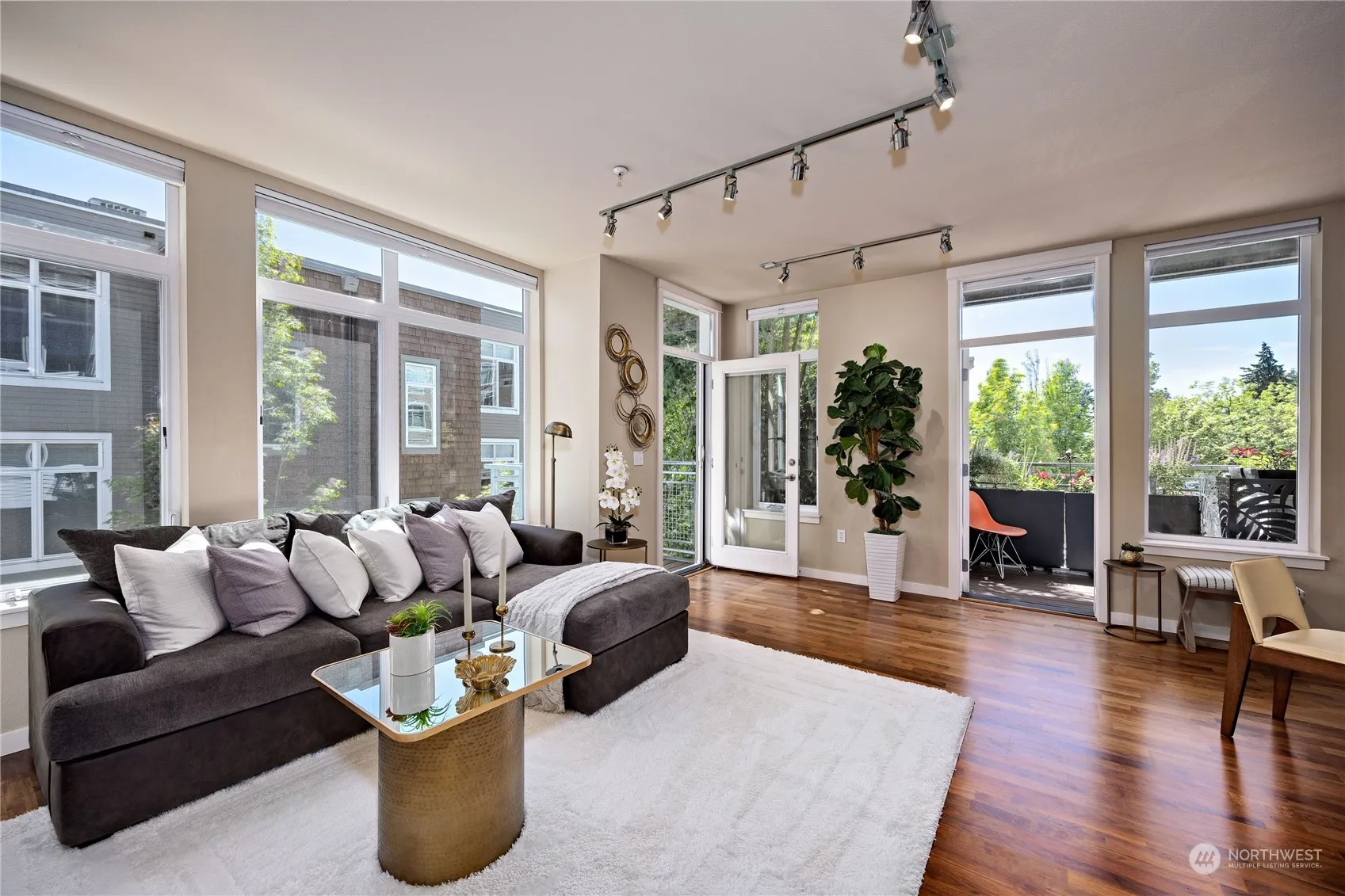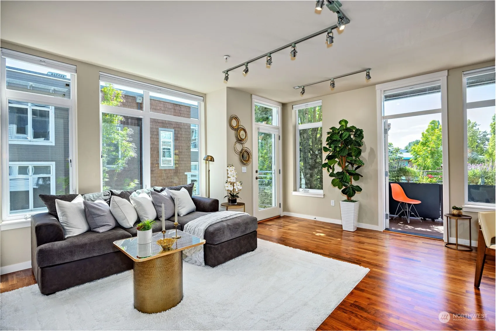 Multi-Level, In-Town living with sunset views! This south facing corner townhouse w/floor to ceiling windows, is flooded in natural light. Newly installed mini splits provide efficient heat, & A/C. Main Floor features hardwood floors, 2 private balconies & gorgeous kitchen w/new appliances, granite counters & peninsula seating. Upper bdrms w/California closets, are on opposite sides of home for added privacy. Primary bdrm features 2 additional private balconies, & ensuite bath. Lower level bonus rm w/built in desk & shelving is the perfect quiet & private workspace & includes a Murphy bed for additional sleeping space. Private 2-car garage w/Tesla charger, & storage room. All community amenities. Conveniently located across from ferry.