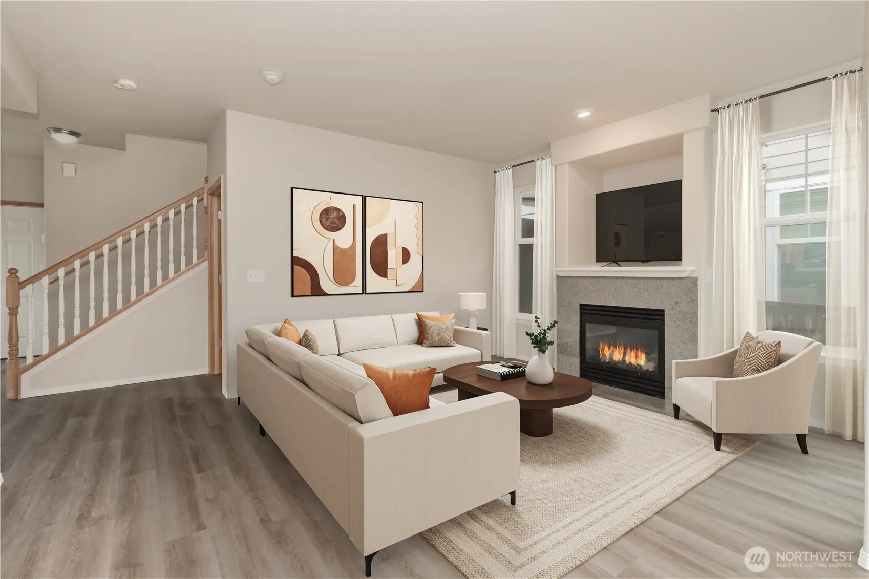 Own your own land at this freshly remodeled townhome on a sunny corner lot. This small community, Glacier View, offers sidewalks & a sport court all on a dead end road only minutes to HWY167. This 3 bedroom, 2.5 bath unit offers 10′ ceilings on the main level which include a formal entry which opens to a great room with fireplace. New vinyl plank flooring throughout the main level. The eat in kitchen with bar offers freshly painted white cabinetry, new SS fridge & stove and granite countertops. Additional room for formal dining as well. Double sliding doors lead to your covered deck & astro turf lawn, perfect for pets or a space to enjoy the sun. Access to the 2 car garage from inside or out. Up the first set of steps, you are met with an office. Up a few more and you come to the 3 bedrooms and full size bath. Vanity has been freshly painted as has the first bedroom. Laundry closet upstairs as well. The primary suite offers a walk in closet, vaulted ceilings & 5 pc bath, also featuring a freshly painted vanity. New carpet underfoot upstairs. Great natural light!