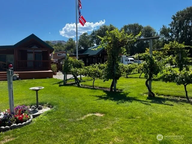 GREAT PRICE REDUCTION! WOULD YOU LIKE TO LIVE ON LAKE OSOYOOS? FOR A PRICE YOU CAN AFFORD – WALK IN READY is what you get when you buy this Park Model at ORO BEACH RESORT on east side of LAKE OSOYOOS. Arizona Room added for additional living space. Enjoy 550′ of beachfront on 7 acres. Boat Ramp & private dock. Home has bedroom PLUS 120 sf sleeping loft. FABULOUS 800sf front DECK for entertaining. Dining room will seat many; built in cabinetry provides great storage. HEAT PUMP 2022. Interior repainted 2023. Water softener system. Home completely furnished. You will love the quaintness of this 21 home gated resort with laundry room, rec room, common green area. Includes detached 2 car garage 22′ wide, 28’long w/ 300′ of sleeping loft w/ split AC. When you buy here, you will get a 2nd lot for an RV, boat parking or whatever? BUY ORO BEACH FOR THE MOST FUN RESORT ON LAKE OSOYOOS!!