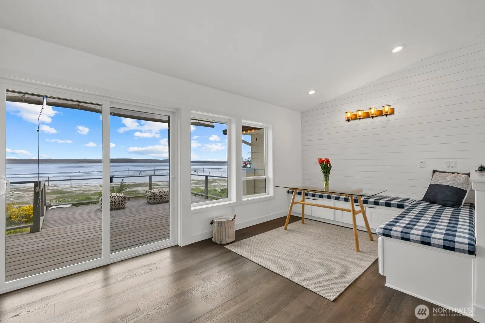 Beach, Light & Views. Exceptionally rare west-facing waterfront home, fully remodeled, guest studio, on a near-acre lot and 150+ ft of private beach. Light filled, with stunning water views from every room! High-end main kitchen with brand new Sub-Zero fridge, Wolf range, & beach-inspired finishes. Main-floor primary suite offers vaulted ceilings & a spa-like bath. Lower level includes a second kitchen, walk-out patio & separate entrance. Cozy ADU with amazing views, is perfect for rental or private office. Wrap-around driveway, 2-car garage, & large carport. Easy beach access for walking, kayaking, & wildlife watching. This move-in ready home is perfect for relaxing & entertaining. Welcome to Warm Beach living with sunsets & serenity!