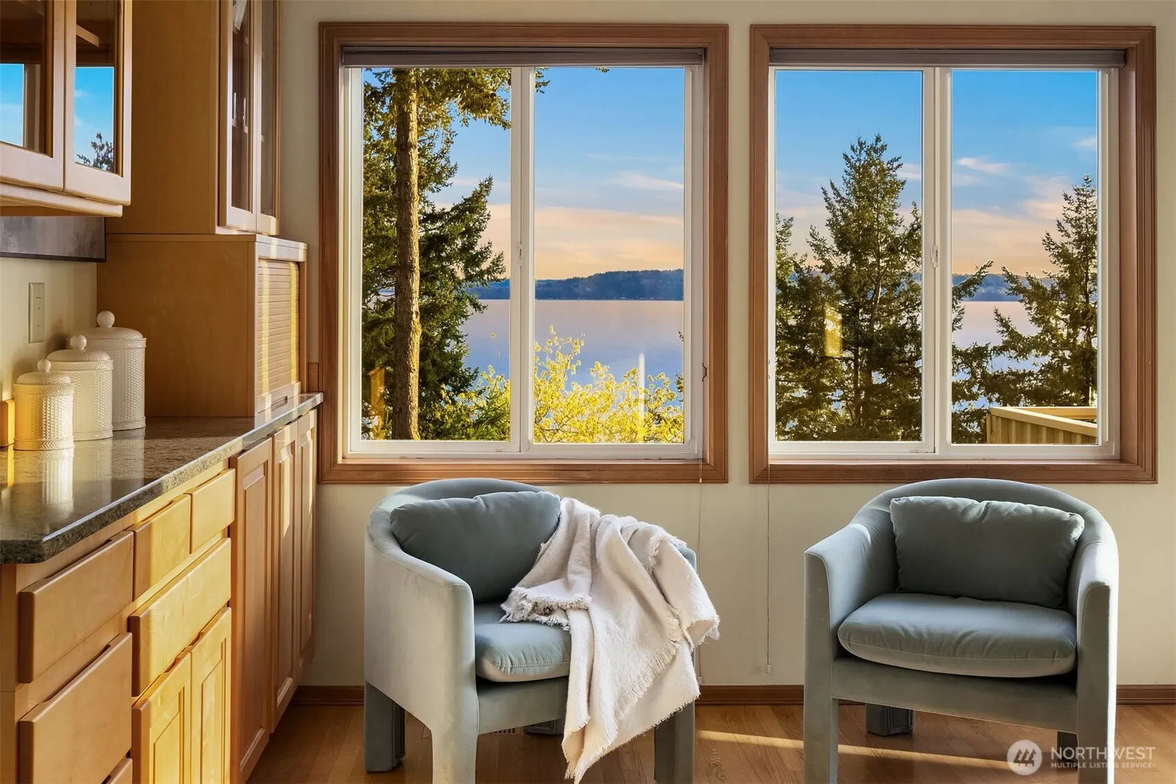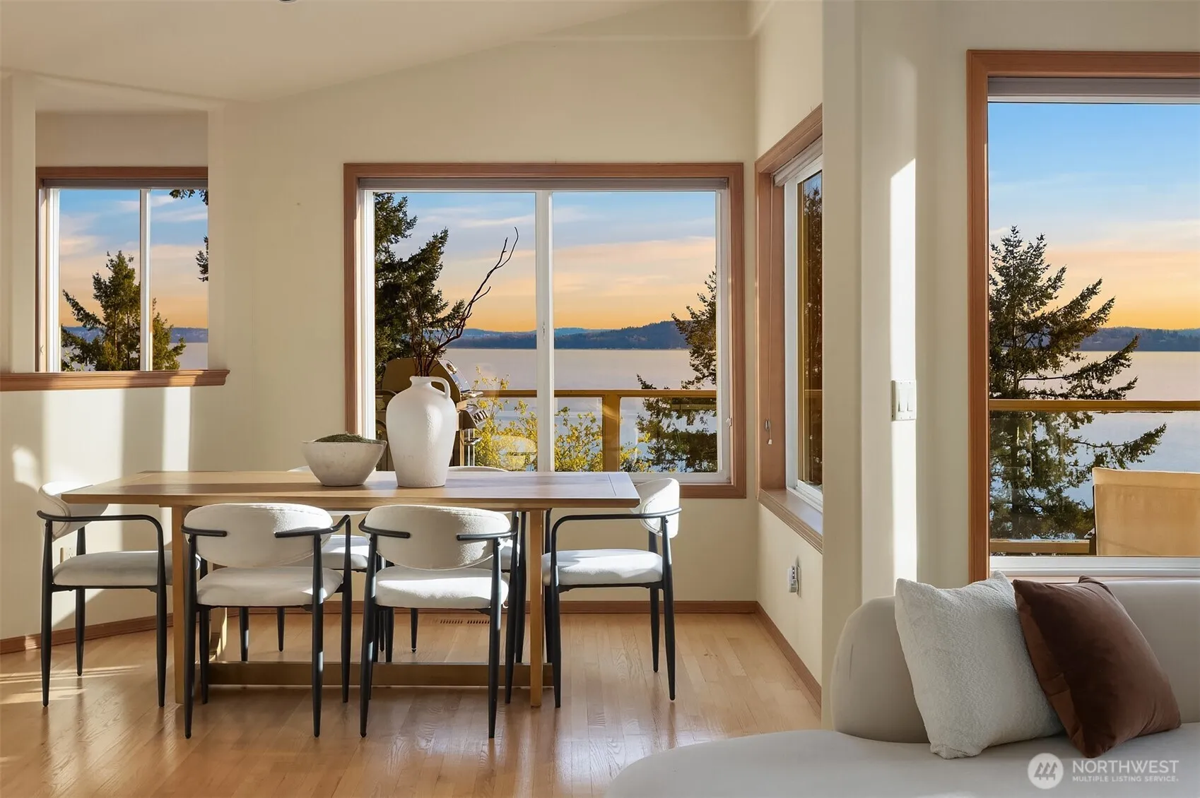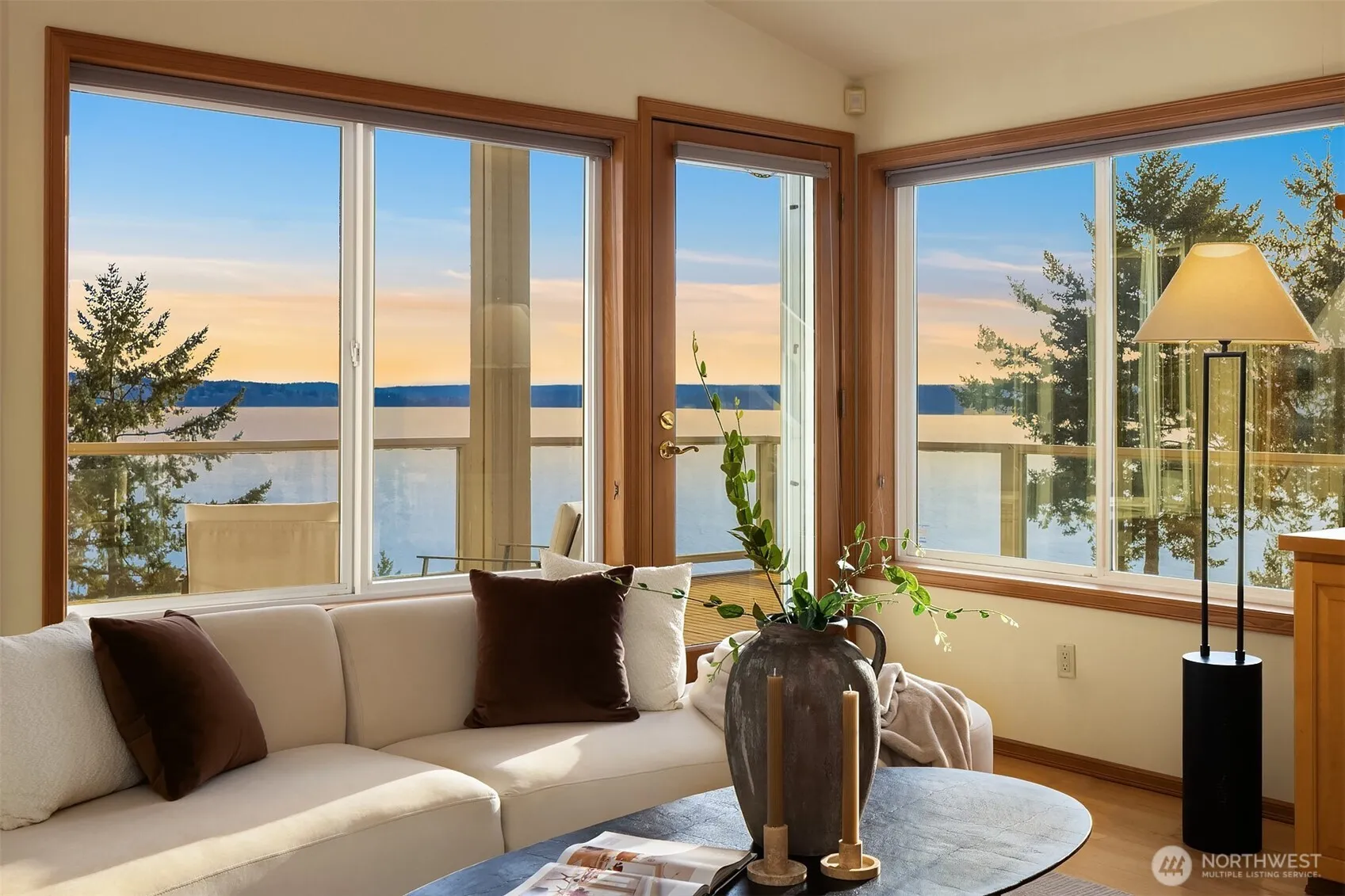 Welcome to Three Tree Point with this Northwest retreat blending privacy, light & striking views. Set on a serene residential street along homes all treasuring their panoramic vistas & steps to the Indian Trail leading the beach, the property offers a waterfront lifestyle. A vine pergola frames the main entrance inviting guests in, amidst delightful scents of blossoms & firs. Inside, hardwoods floors, graceful lines & masterful craftsmanship – including a sculptural custom staircase- set an inviting, artful note. Designed for connection & ease, the house offers practicality, aesthetics & a captivating Mt Rainier, islands & Puget Sound backdrop. Enjoy daily life on the main floor which extends into a spacious outdoor living area for barbecues & morning coffee. The upper-level primary suite w/ its eagle’s nest feel unfolds into a generous bedroom, spa bathroom, walk-in closet and den – ideal retreat for work, reading or creative pursuits. The daylight, ground level provides 2 additional bedrooms plus a large rec room/library w/ fireplace, creating flexible space for guests, hobbies, or extended living. Layered decks & patios foster a natural flow between interior & exterior, stepping down to lush gardens & built-in vegetable beds: a haven for gardeners & nature lovers. 2-car garage + 2 additional off-street parking spaces & ample storage. A peaceful sanctuary for art, music, nature, minutes to Olde Burien shops & restaurants + a short drive to Sea-Tac International Airport.
