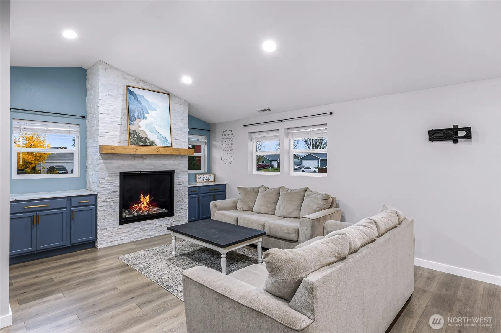 Live the luxury lifestyle in this stunning home! Addition & full top-to-bottom remodel completed in 2021 with no system left untouched. Open-concept design boasts a chef’s kitchen with oversized island, wine fridge, coffee bar, & walk-in pantry. Main living room features a gas fireplace; secondary lounge with electric fireplace & TV. Four bedrooms, 2.5 baths, including a spa-like primary suite with accent wall, soaking tub, & multi-head walk-in shower. Laundry/mudroom with outdoor access, utility sink, & walk-in shower. Entertain outdoors with a flat backyard, covered deck, outdoor kitchen, firepit, play structure, & hot-tub-ready deck. Whole-home generator included. This is luxury, comfort, & style—all on one thoughtfully crafted level.