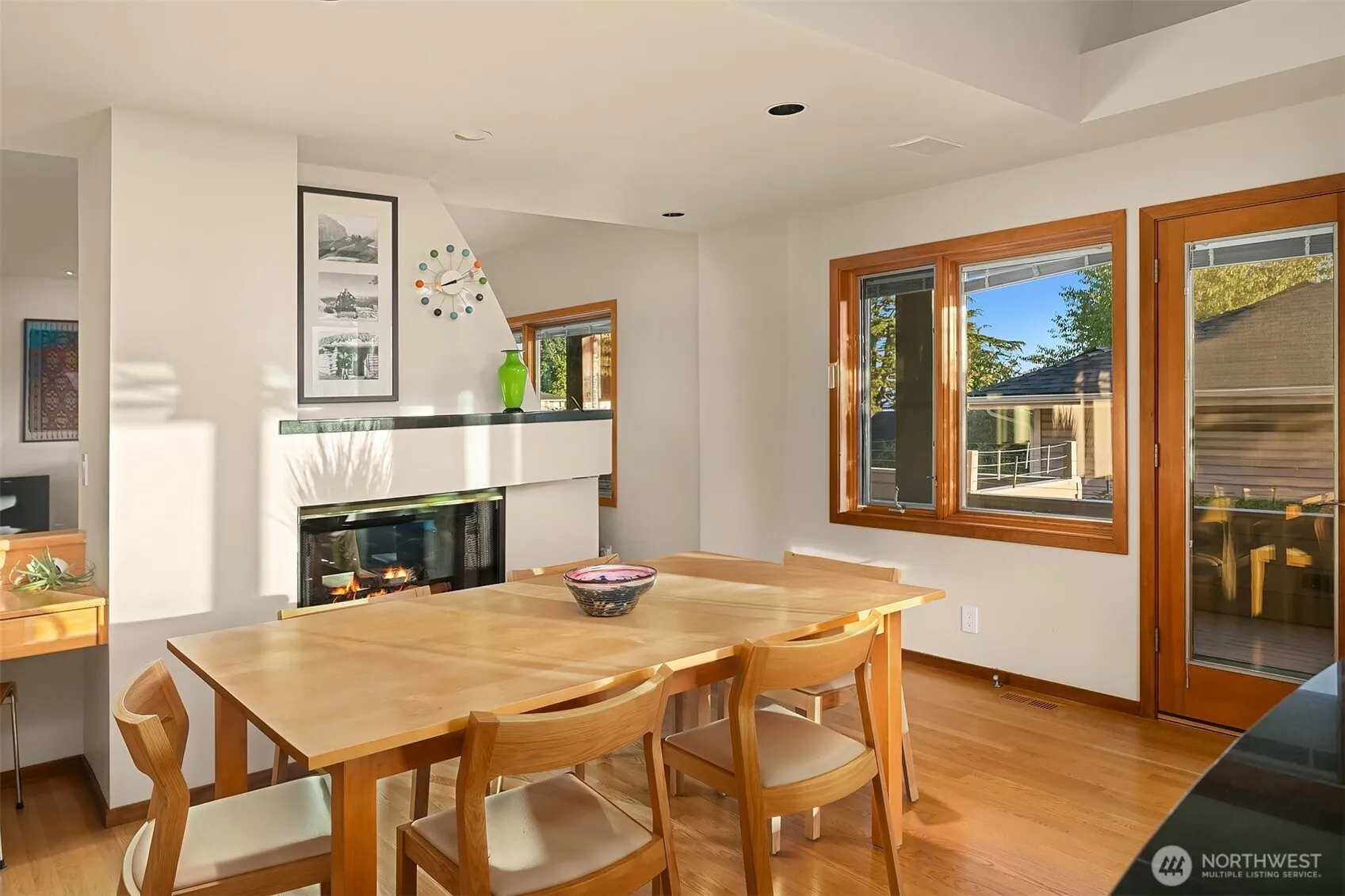 Nestled in coveted Richmond Beach, this architecturally distinctive Northwest Contemporary home captures sweeping Sound and Olympic Mountain views. A light-filled, three-level design showcases dramatic vaulted ceilings, skylights, and expansive walls of windows. The open-concept layout features thoughtfully placed cutouts that preserve airy sightlines while subtly defining each space. The chef’s kitchen is appointed with sleek black granite countertops, warm maple cabinetry, a generous island, and a built-in bench—perfect for casual dining or gathering. Directional gallery lighting enhances both the home’s architectural details and display spaces, while a modern two-sided fireplace adds style and warmth. Designed for flexibility and comfort, the ideal floor plan includes two bedrooms on the main level, three upstairs, plus a den, bonus room, and rec room. Step outside to an expansive wrap-around deck crafted from exotic wood, complete with a 20-foot Sunsetter awning, perfect for enjoying stunning sunsets. The primary suite offers a private view deck, walk-in closet, and spa-inspired bath. Additional highlights include professionally landscaped grounds with drip irrigation, integrated speakers and smart home features, a Tesla charger, and a new roof installed in 2022. Ideally located just moments from Kings Schools, parks, and the beach.