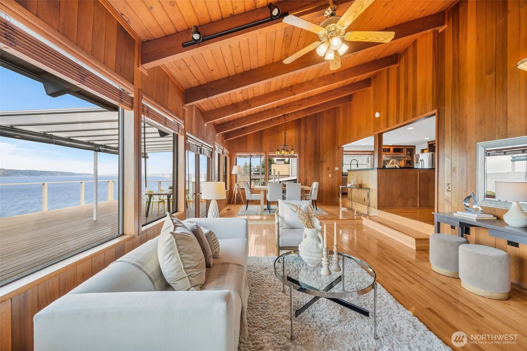 There’s something special about a home where the view never gets old—and this one delivers from the moment you walk in. Set in Mukilteo’s Chenault Beach neighborhood, this home captures wide, 180° views of Puget Sound and the Olympic Mountains from every level. Whether you’re in the living room, downstairs in the rec room, or unwinding in the primary suite, the Sound is always there—changing with the light, the weather, and the rhythm of the day. No matter the season, the nearly 900-square-foot, low maintenance, weather proof deck, quickly becomes your favorite place to be. Morning coffee watching ferries pass by, evenings with sunsets over the water and mountains, and when you least expect it, the occasional whale sighting. Eagles overhead, boats in the distance—it’s the kind of setting that makes you slow down and take it all in. Inside, the home has a warm, natural wood feel that fits perfectly with its surroundings—like a true Pacific Northwest beach house. The primary suite is its own retreat, with a bath where even a quick soak turns into a moment you don’t want to rush, thanks to the view.This is more than just a home—it’s where everyday life comes with a view you’ll never take for granted.