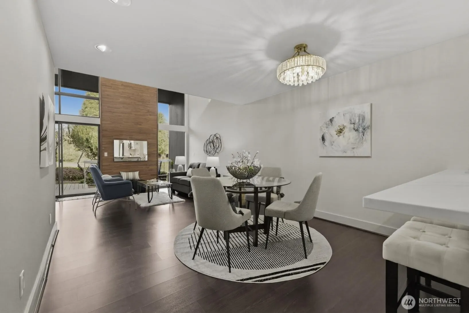 Welcome to this stylish townhome with floor to ceiling windows and an inviting interior. Just steps to the lake! Home boasts quality wood floors, new carpeting, new lighting. Entertain in the stunning kitchen with new quartz counters/seating bar, new white cabinets with black pulls, quality stainless appliances. Main floor half bath has updated vanity with Italian vessel sink. Primary bedroom features vaulted ceilings and new privacy windows overlooking the living room below. Second bedroom could also be an office or den. Modern style full bath features custom tile shower with hi-end glass doors. New full-size washer/dryer. Entertain on the large view deck or relax indoors by the fireplace. NO SPECIAL ASSESSMENTS. Attached carport parking with locked storage plus extra parking nearby. Sixty-01 has gated entry, four swimming pools, three lakes, 83 acres of trails/parks, clubhouse, gym, pea patch and much more! Great Birdwatching!