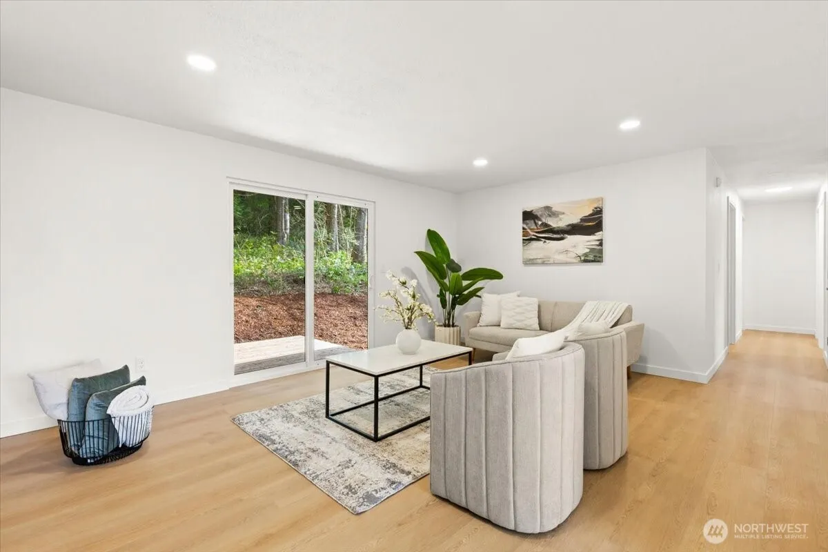 Gorgeous, fully renovated 3 bedrooms, 1 bath rambler is completely turn-key and ready for its new owners. Featuring all-new flooring, interior and exterior fresh paint, new windows. Updated kitchen with quartz countertops, backsplash and sparkling stainless steel appliances, perfect for your culinary adventures. The bright living room offers an electric fireplace with an accent wall, adding warmth and style. Step outside to unwind on a spacious patio with nature sceneries. Home sits on almost half an acre lot with long driveway for lots of parking and a one car garage. Just minutes from freeway, Costco and other amenities, and only around 20 minutes to JBLM. Come see it today!
