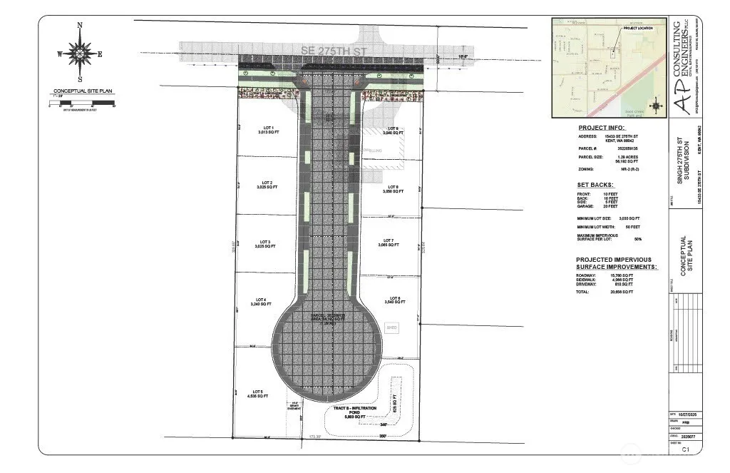 Prime 1.29-Acre Development Opportunity in Kent – Excellent Potential for 8+ Homes! This highly divisible 1.29-acre lot (zoned SR-6) offers outstanding potential for 8 or more single-family homes or a mix of middle housing options. The level, fully usable, hassle-free topography makes subdivision and development straightforward, delivering maximum density in a high-demand area. A well-maintained 1965 rambler (3 beds, 3 baths, ~1,680 sq ft) sits on the property, providing immediate rental income to help cover holding costs during permitting, or simple updates for instant equity while you develop the land. Highlights include a large open backyard ideal for new construction, room for RV parking and outbuildings, partial fencing, garden space, and convenient well & septic access. Prime location near major commuter routes with easy access to shopping, dining, and amenities. Whether you’re a builder, developer, or investor, this is a true land-value play with tremendous upside. Don’t miss this rare chance to capitalize on Kent’s growth